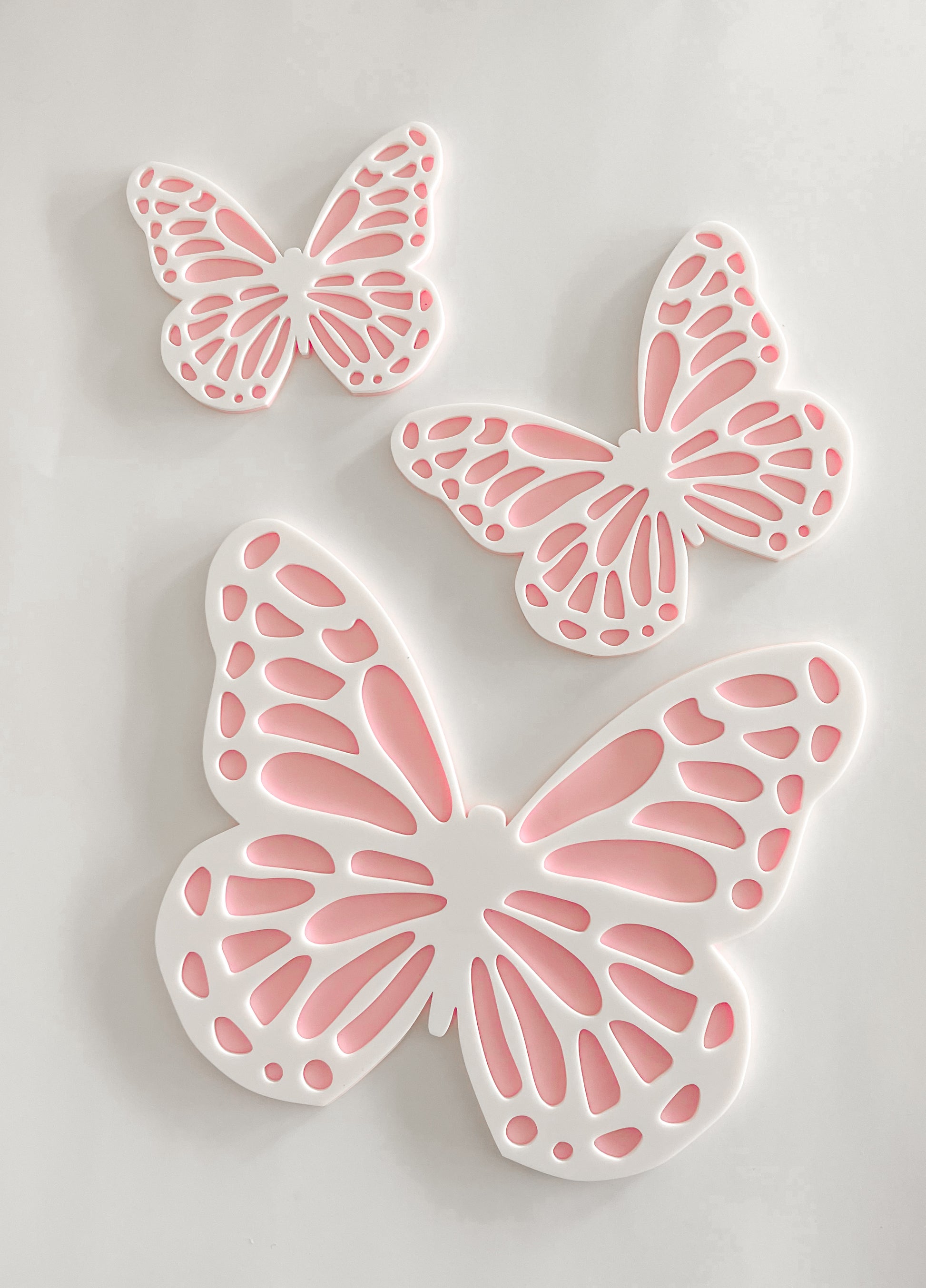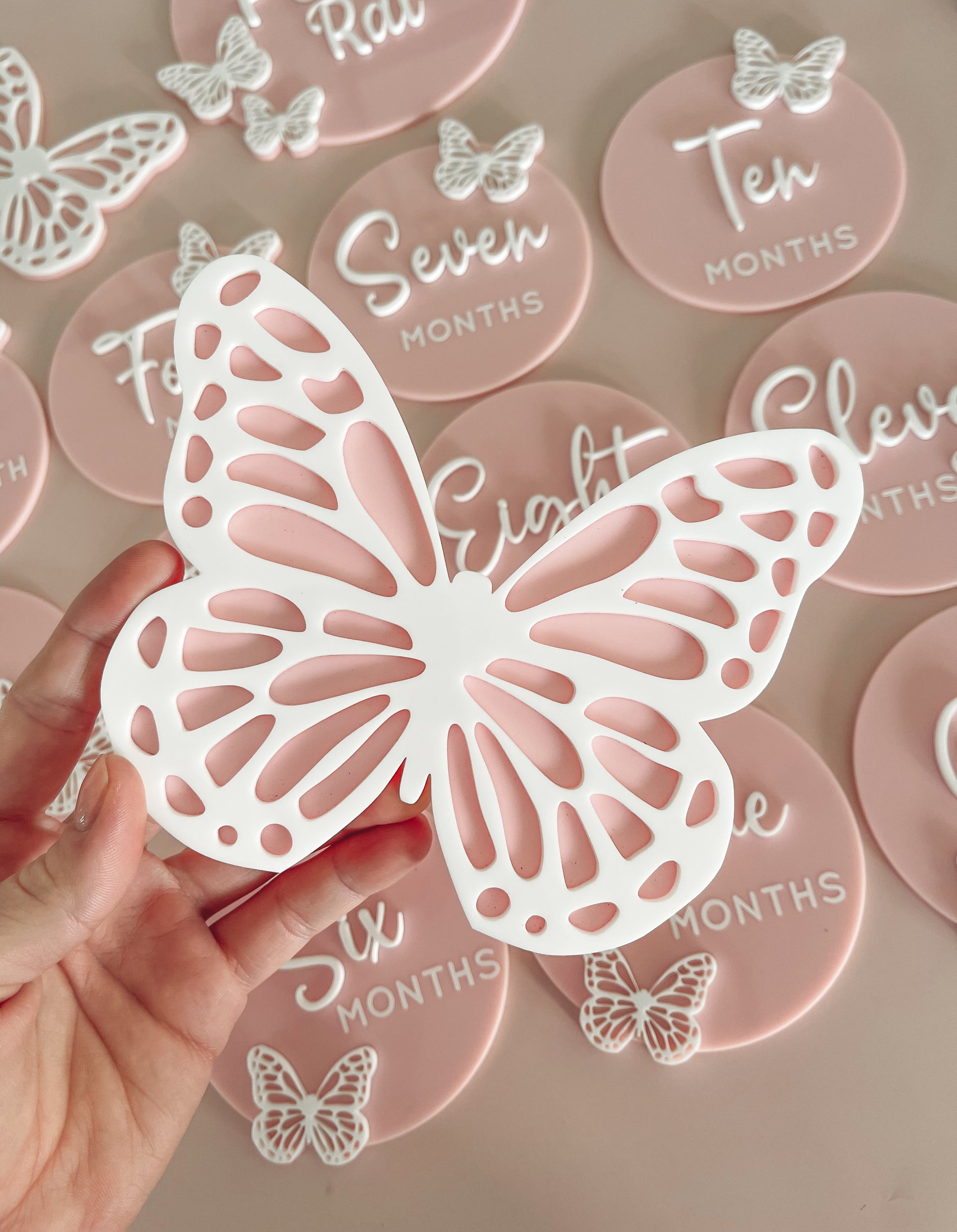 These beautiful 3D double layered acrylic butterflies are the perfect compliment to our Butterfly Announcement Plaques and Milestone sets.