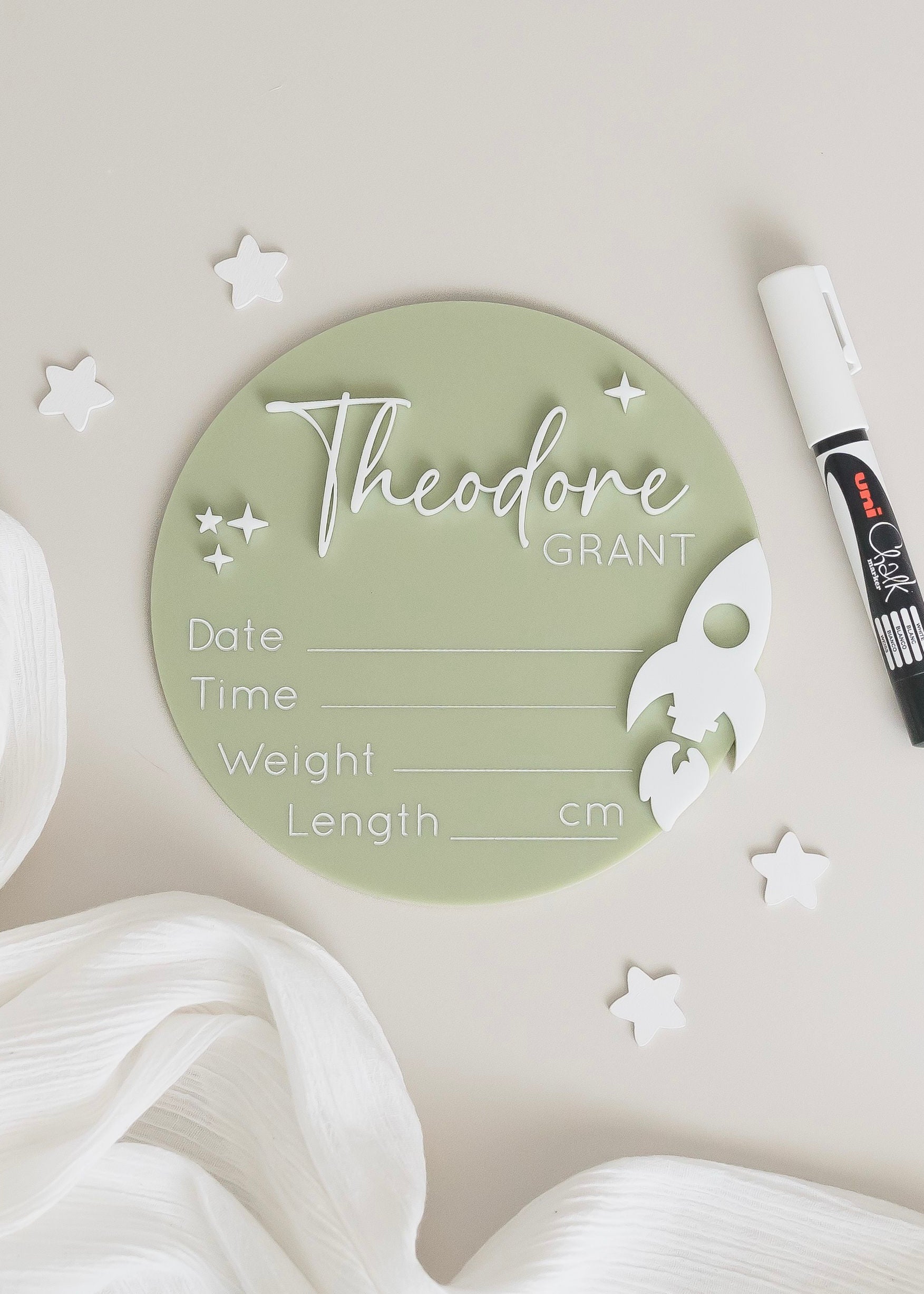 Share your little one’s arrival with our new Rocketship birth announcement plaque.