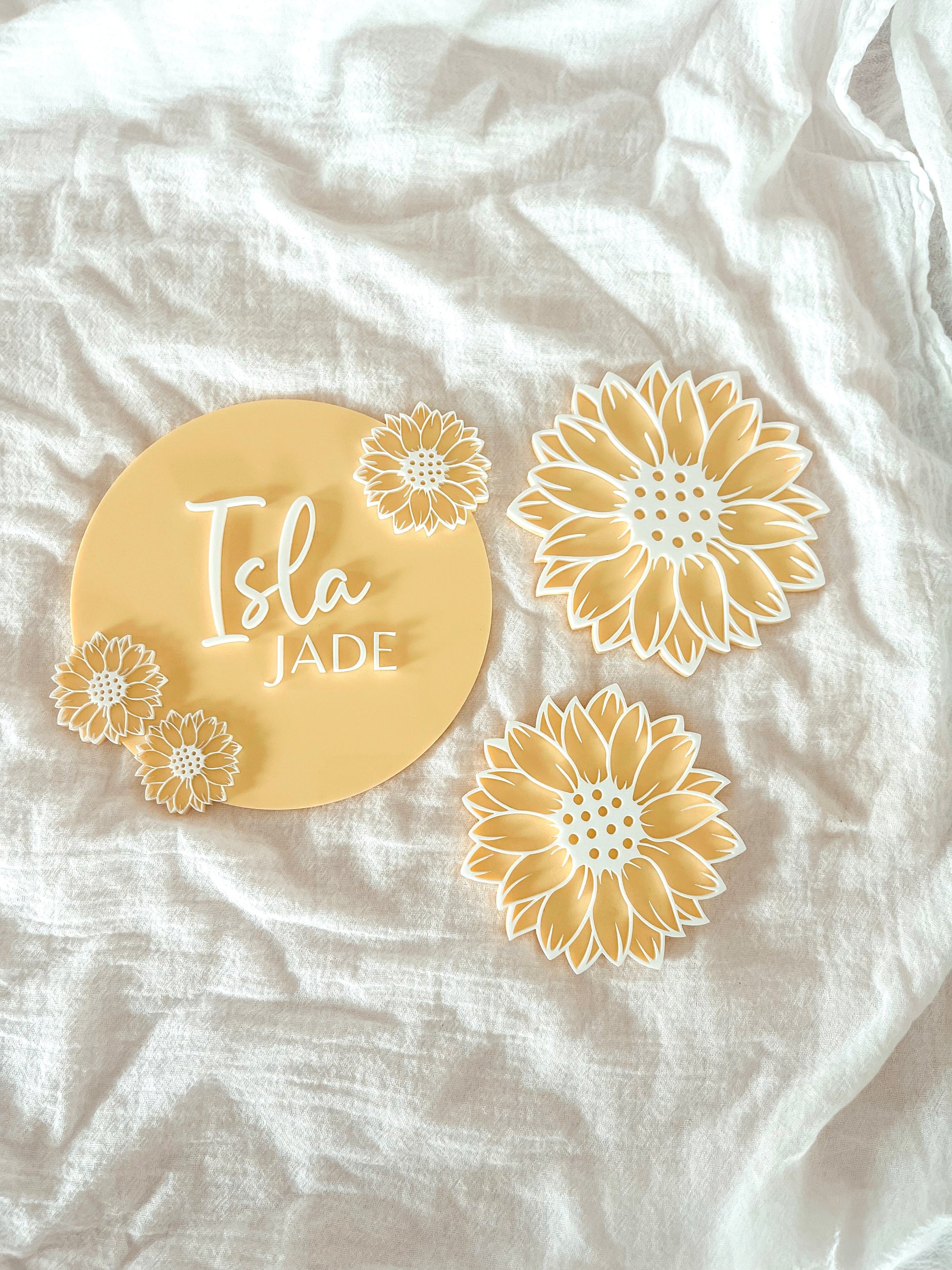 These beautiful 3D double layered acrylic sunflowers are the perfect compliment to our Sunflower Announcement Plaques