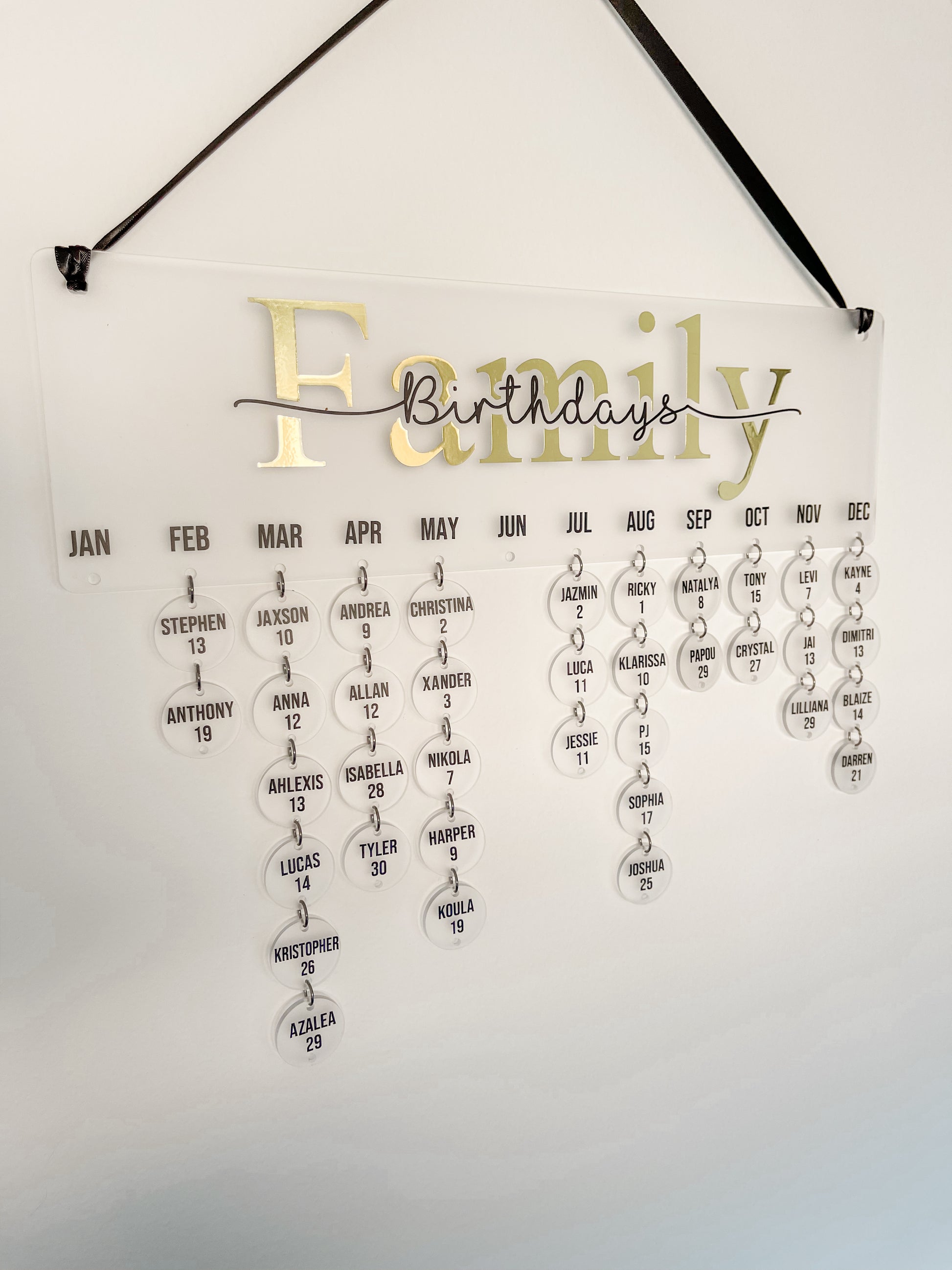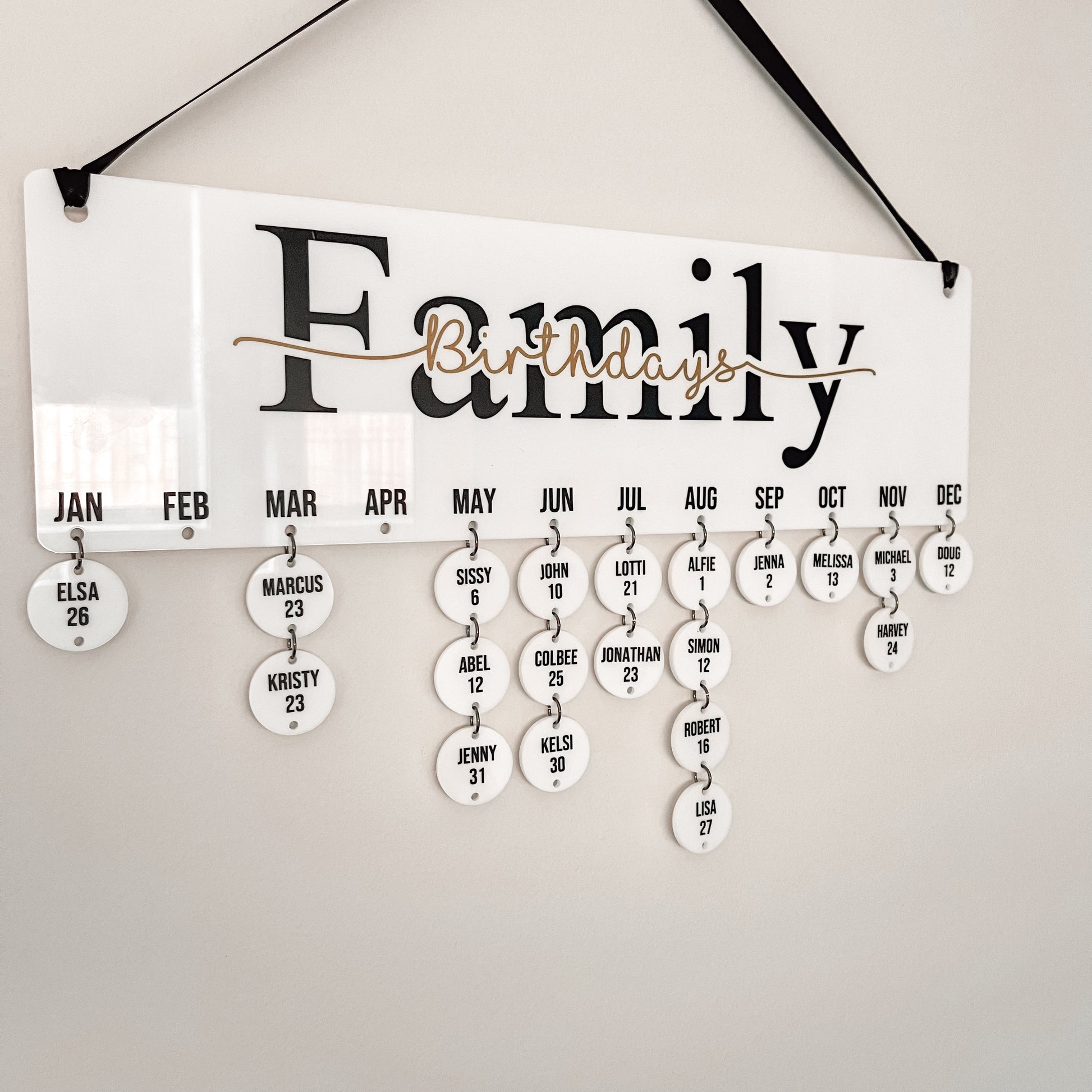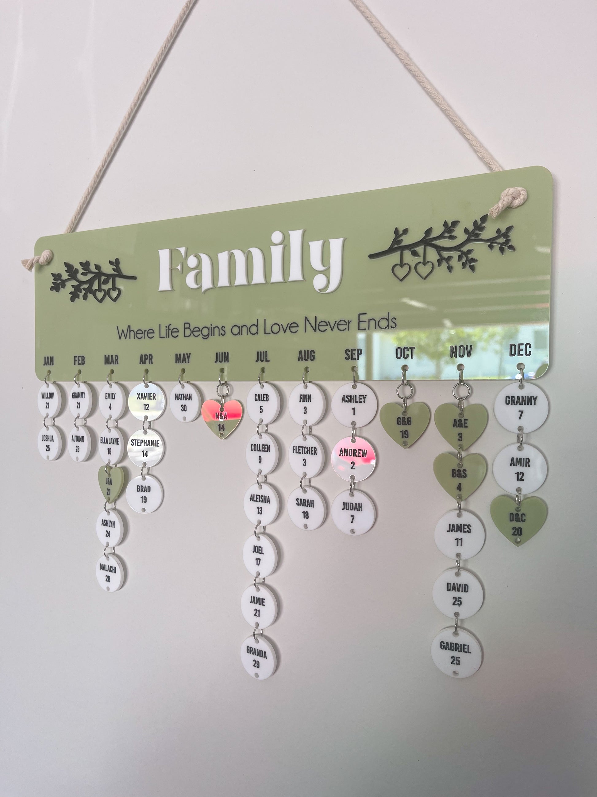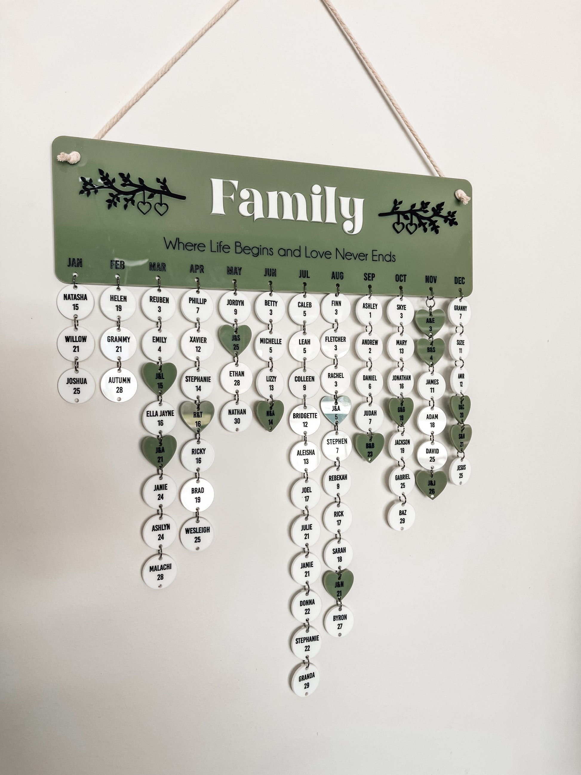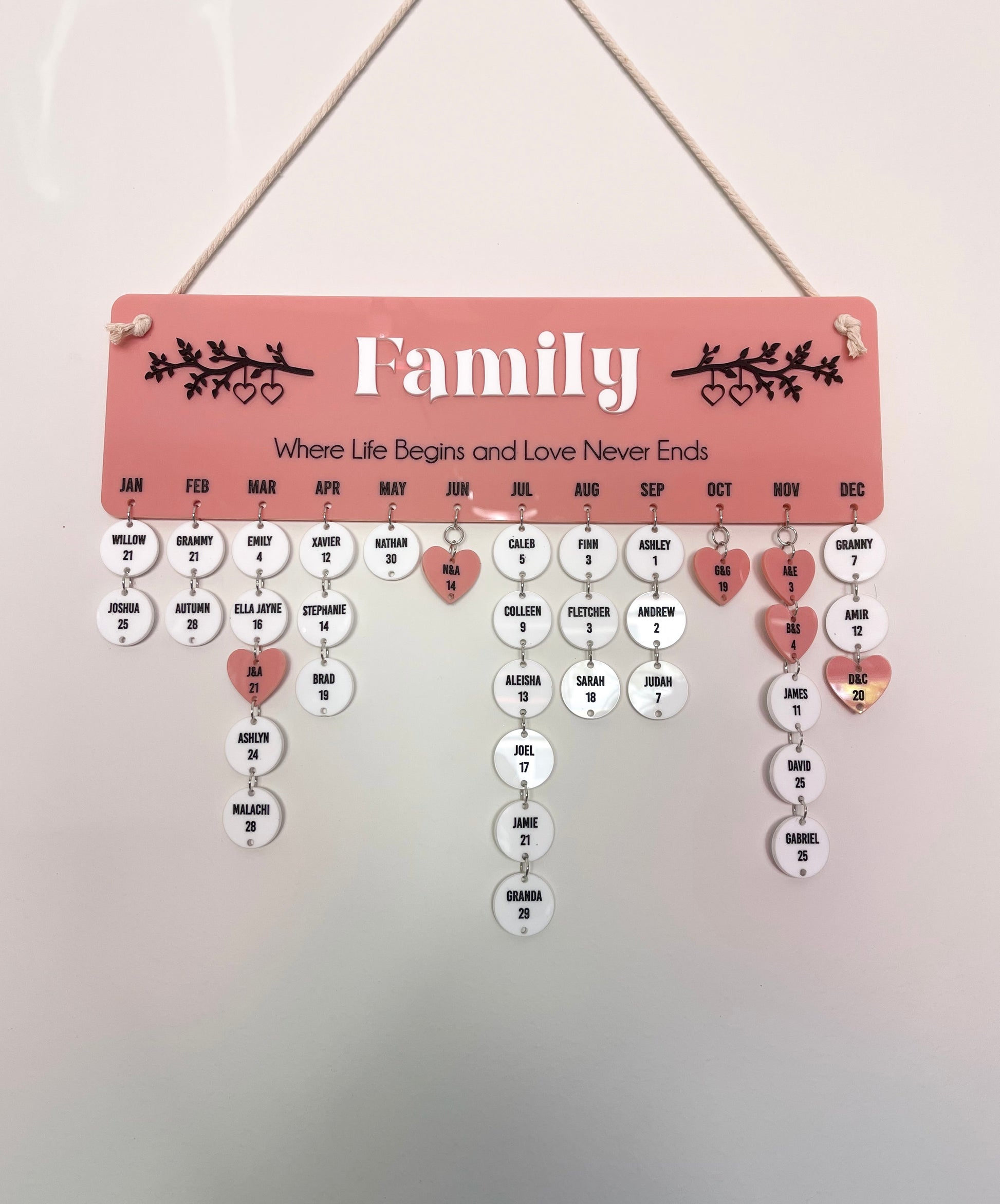 Custom made to order Birthday Calendar wall hanging including up to 20 personalised discs; additional discs can be added for $1 each.