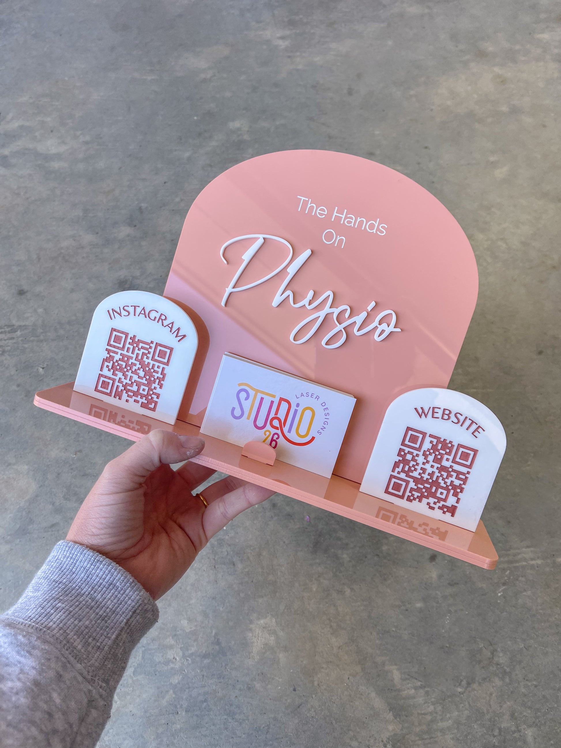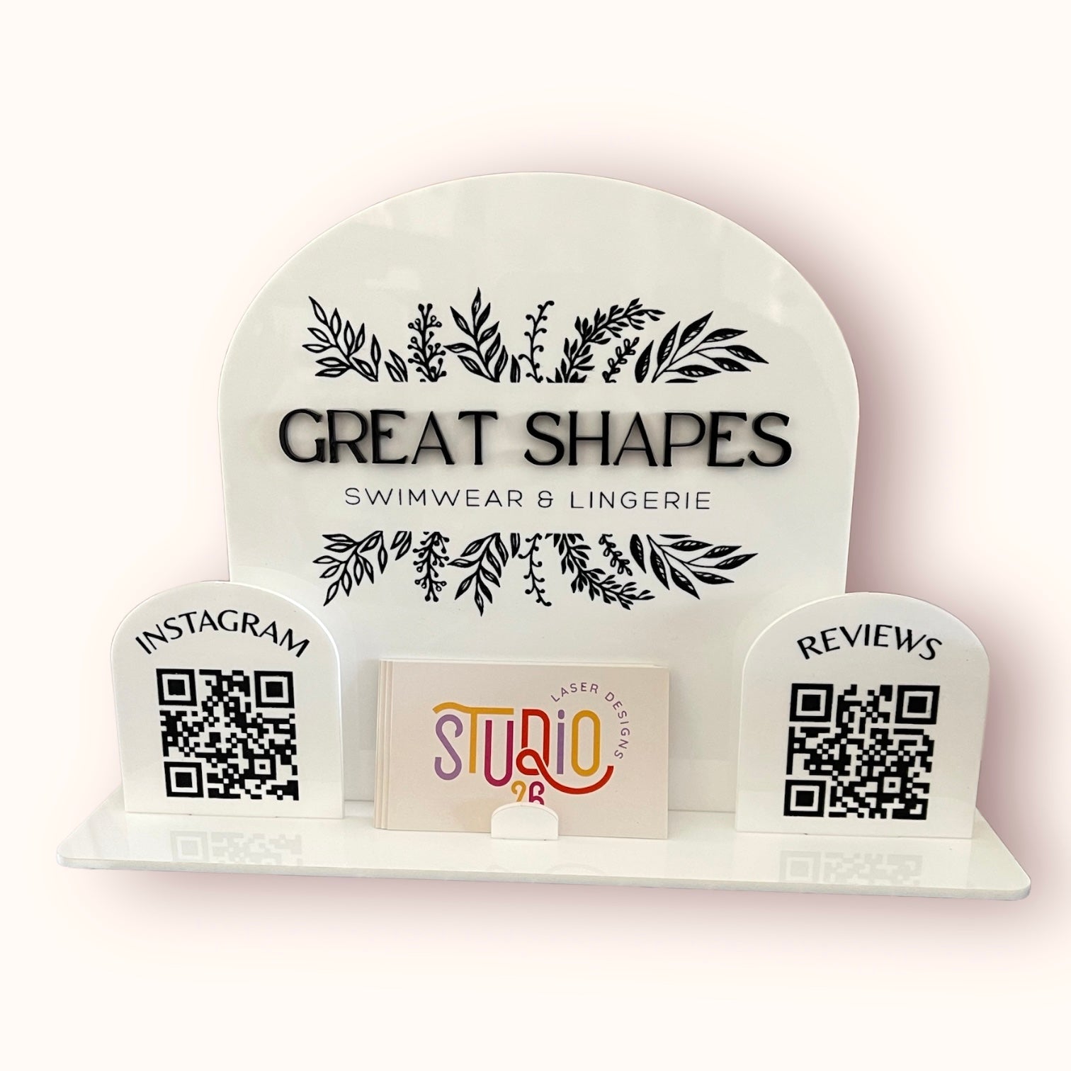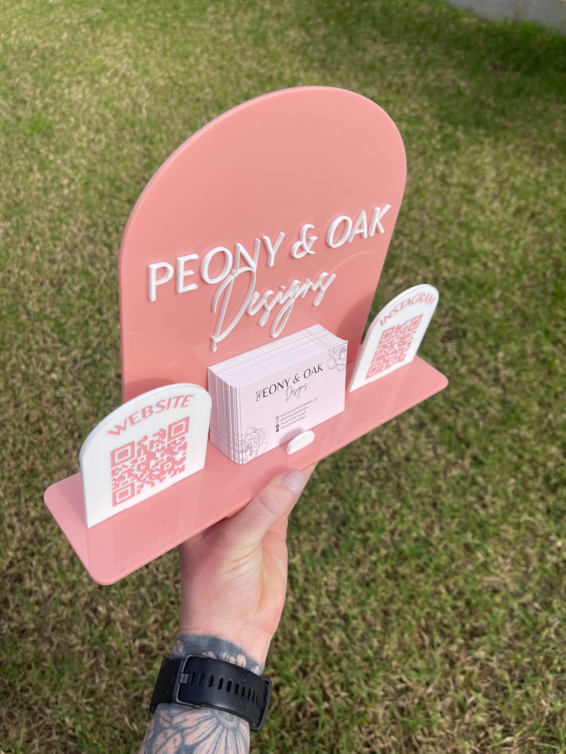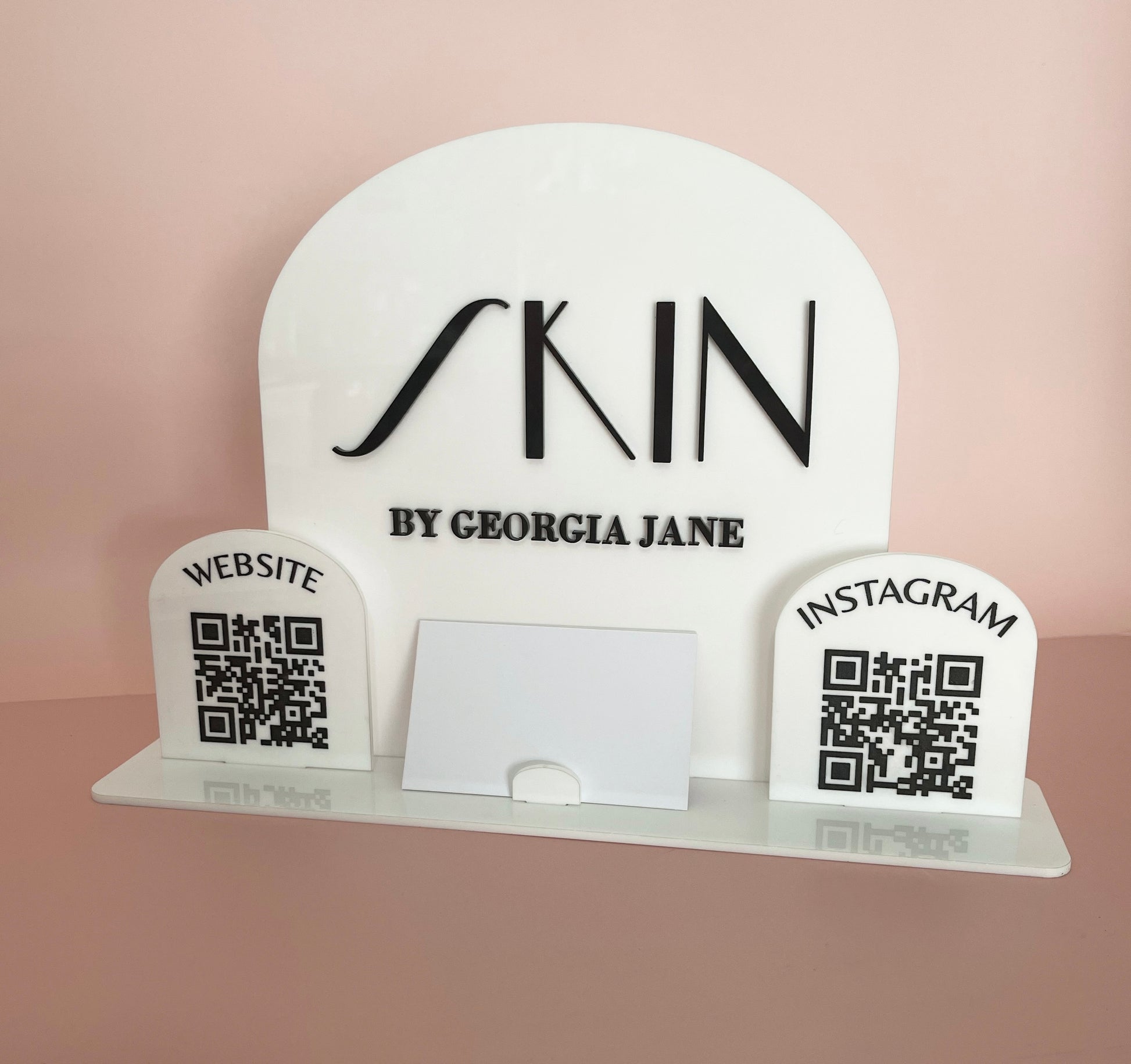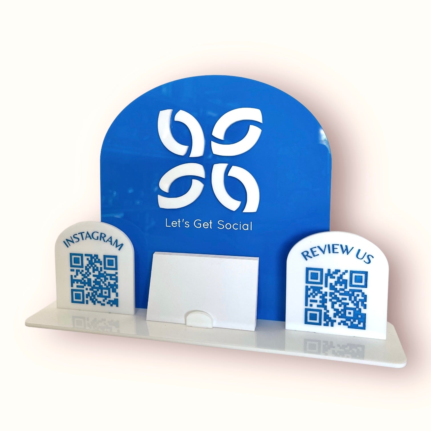 Look no further than our acrylic business logo signage, it is both stylish and practical, with two QR codes that make it easy for customers to find your website or social media page. Plus, the built-in business card holder is a thoughtful touch that will make a great impression on potential clients.