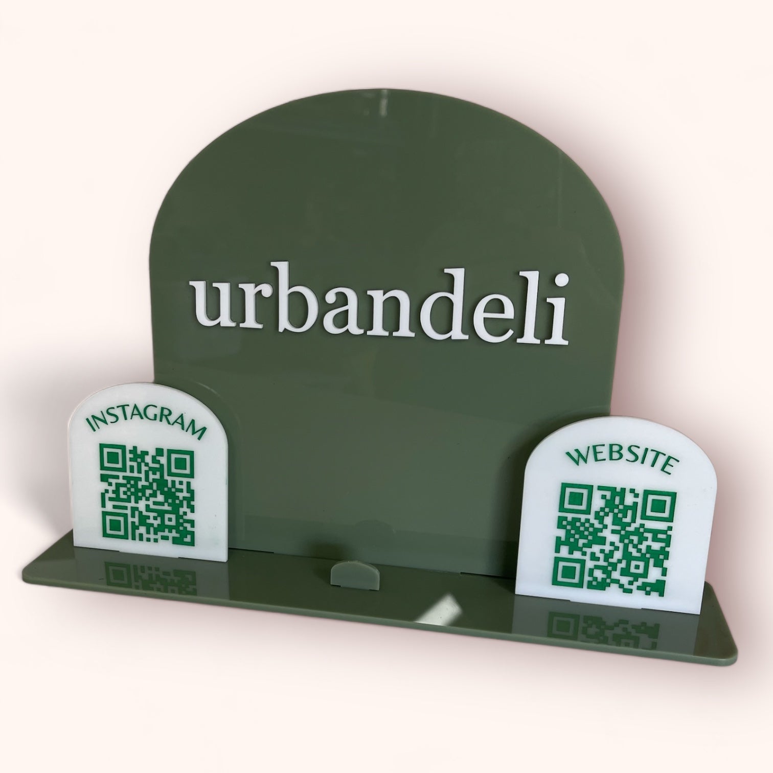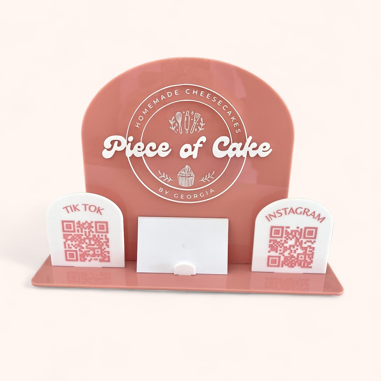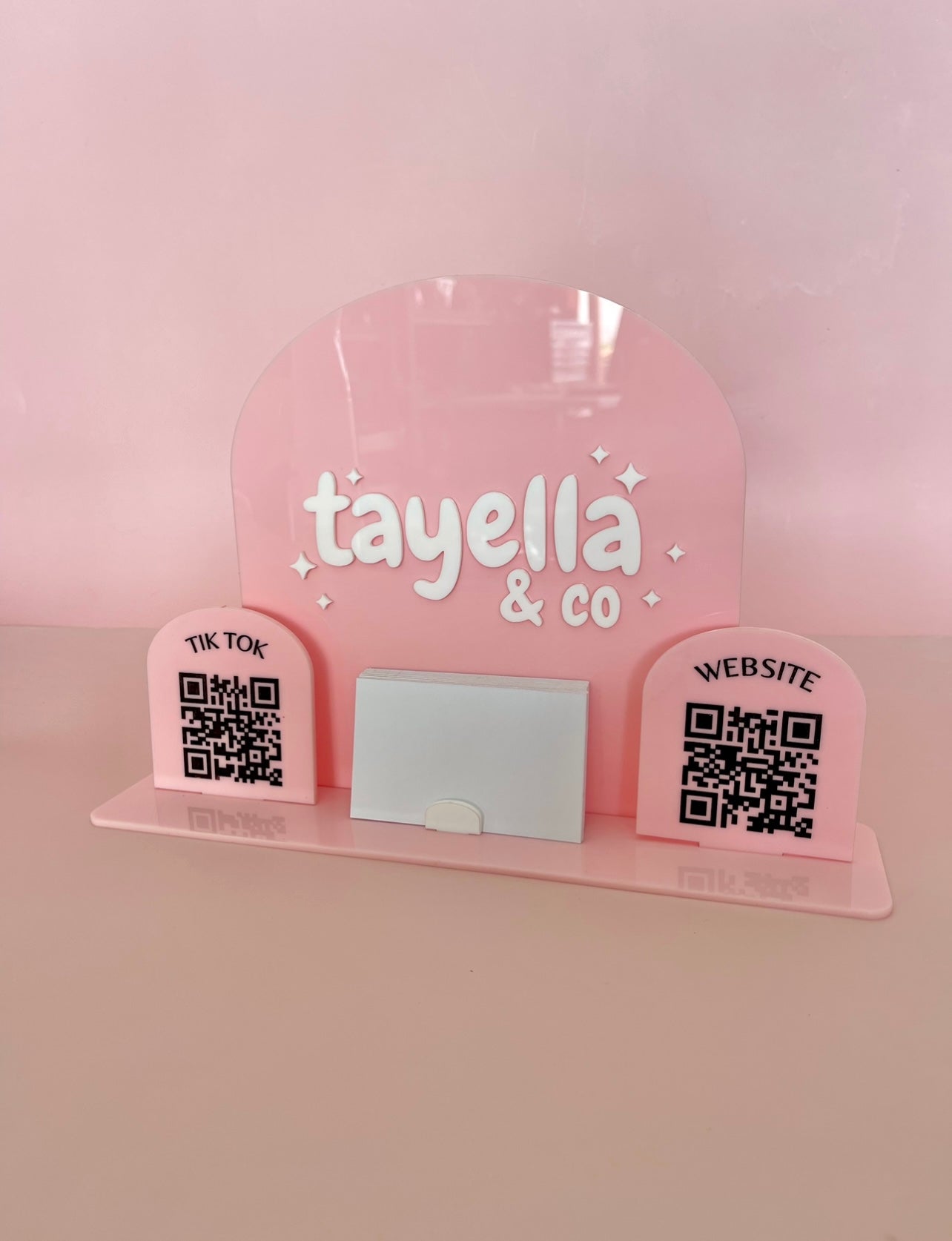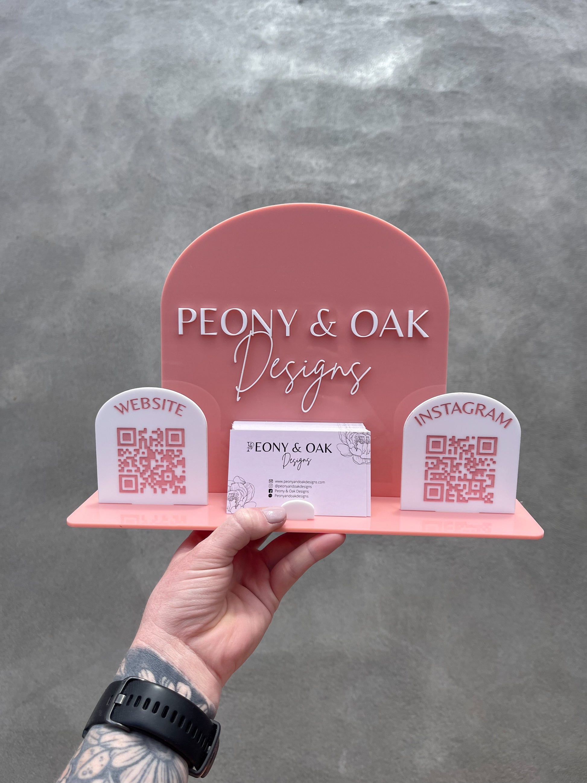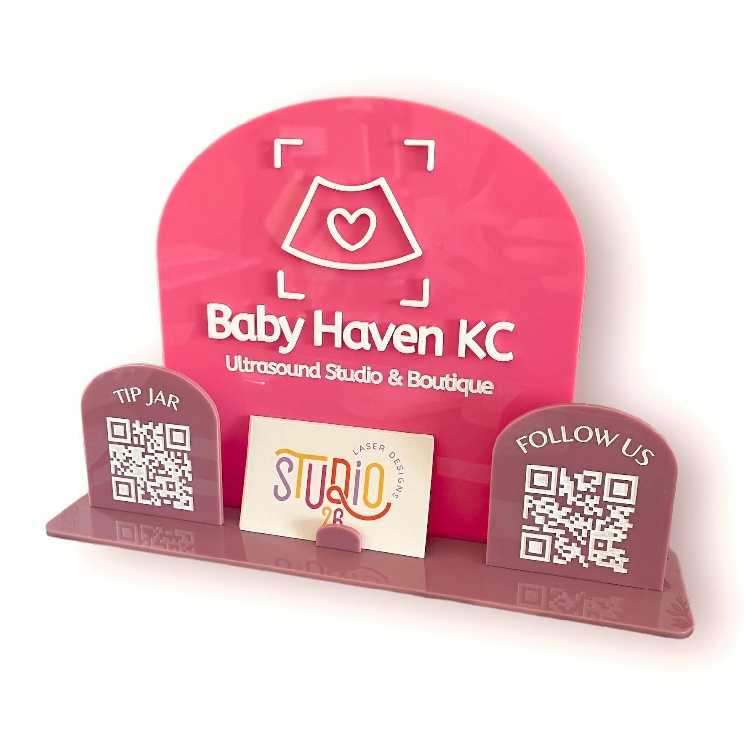 Look no further than our acrylic business logo signage, it is both stylish and practical, with two QR codes that make it easy for customers to find your website or social media page. Plus, the built-in business card holder is a thoughtful touch that will make a great impression on potential clients.