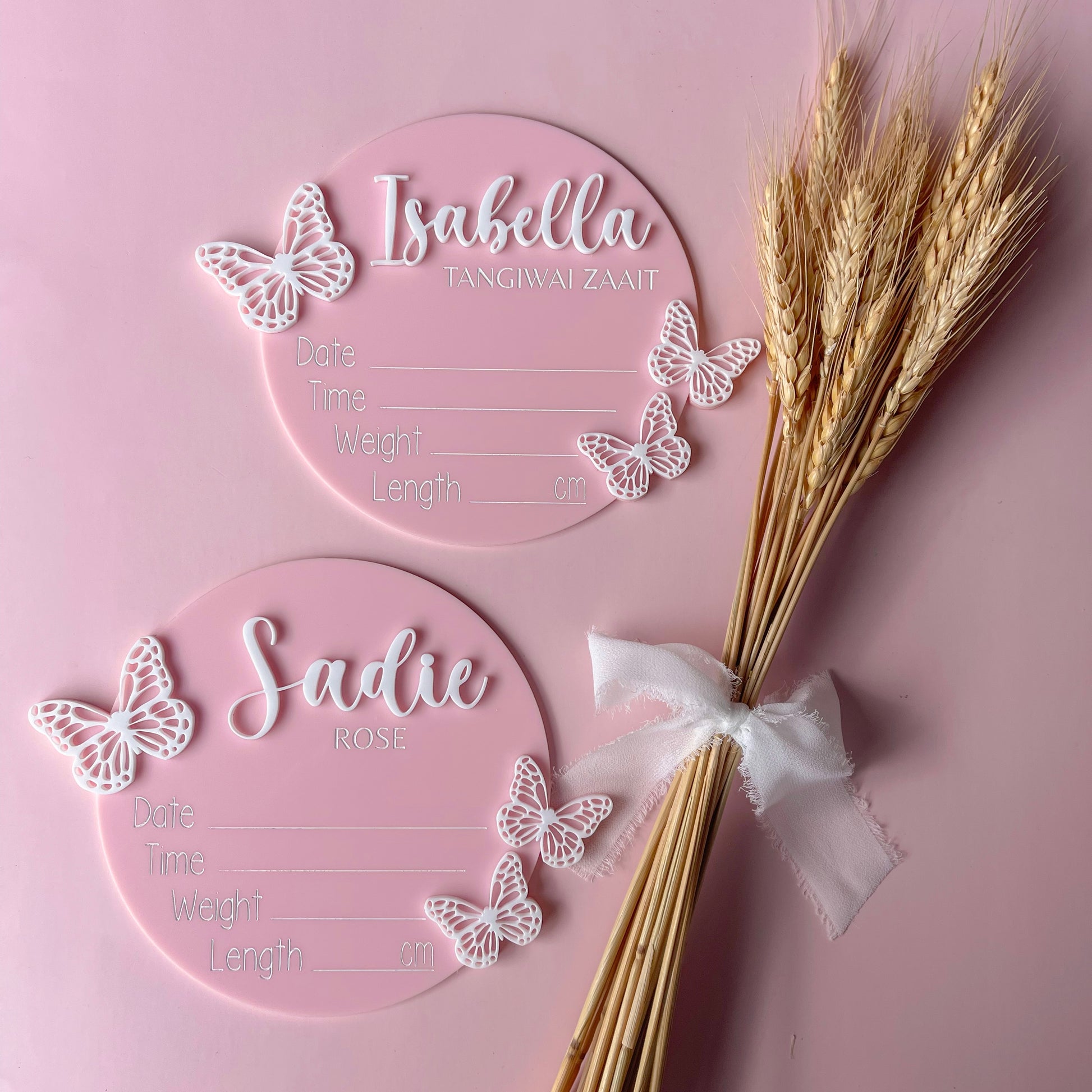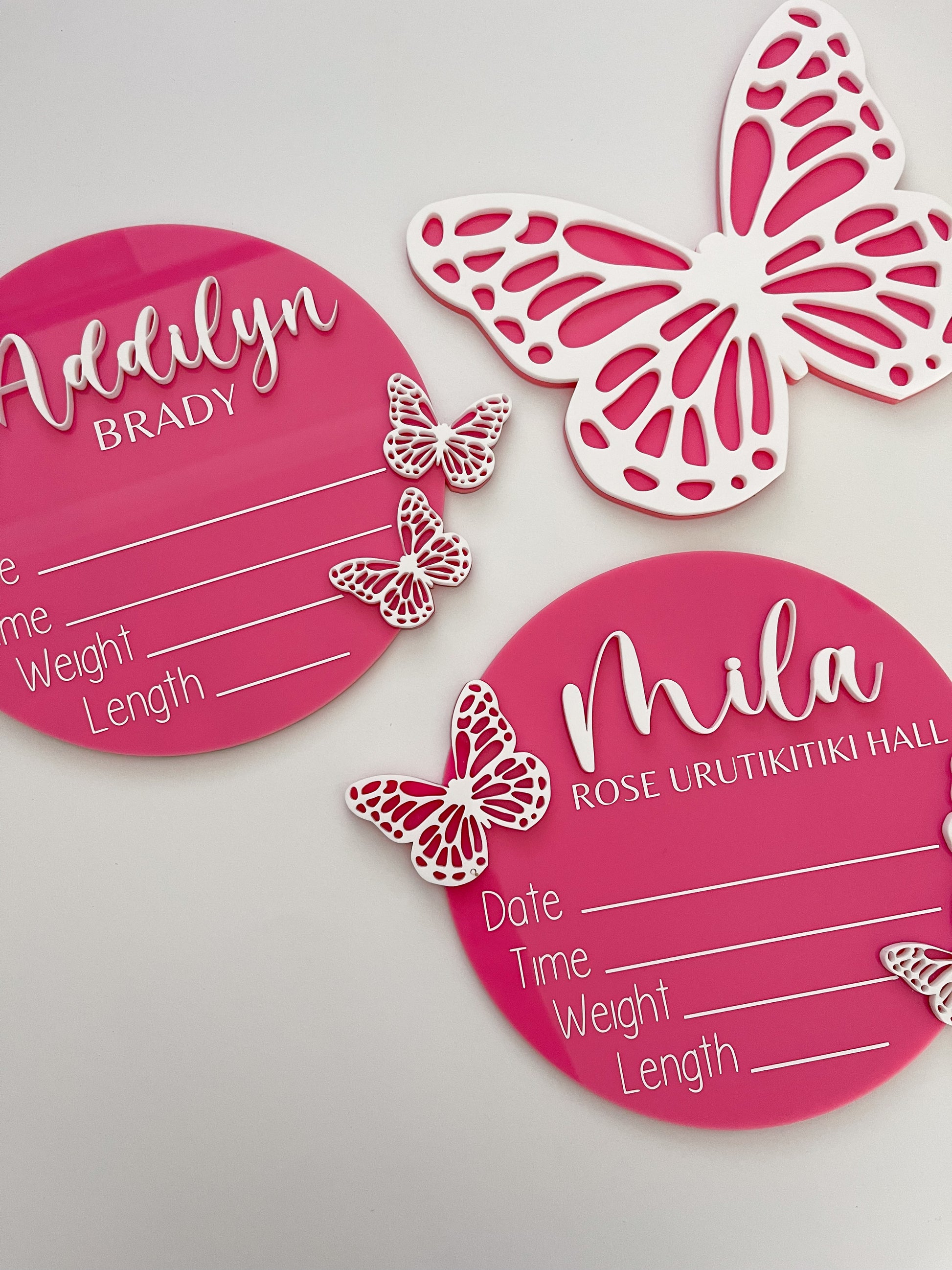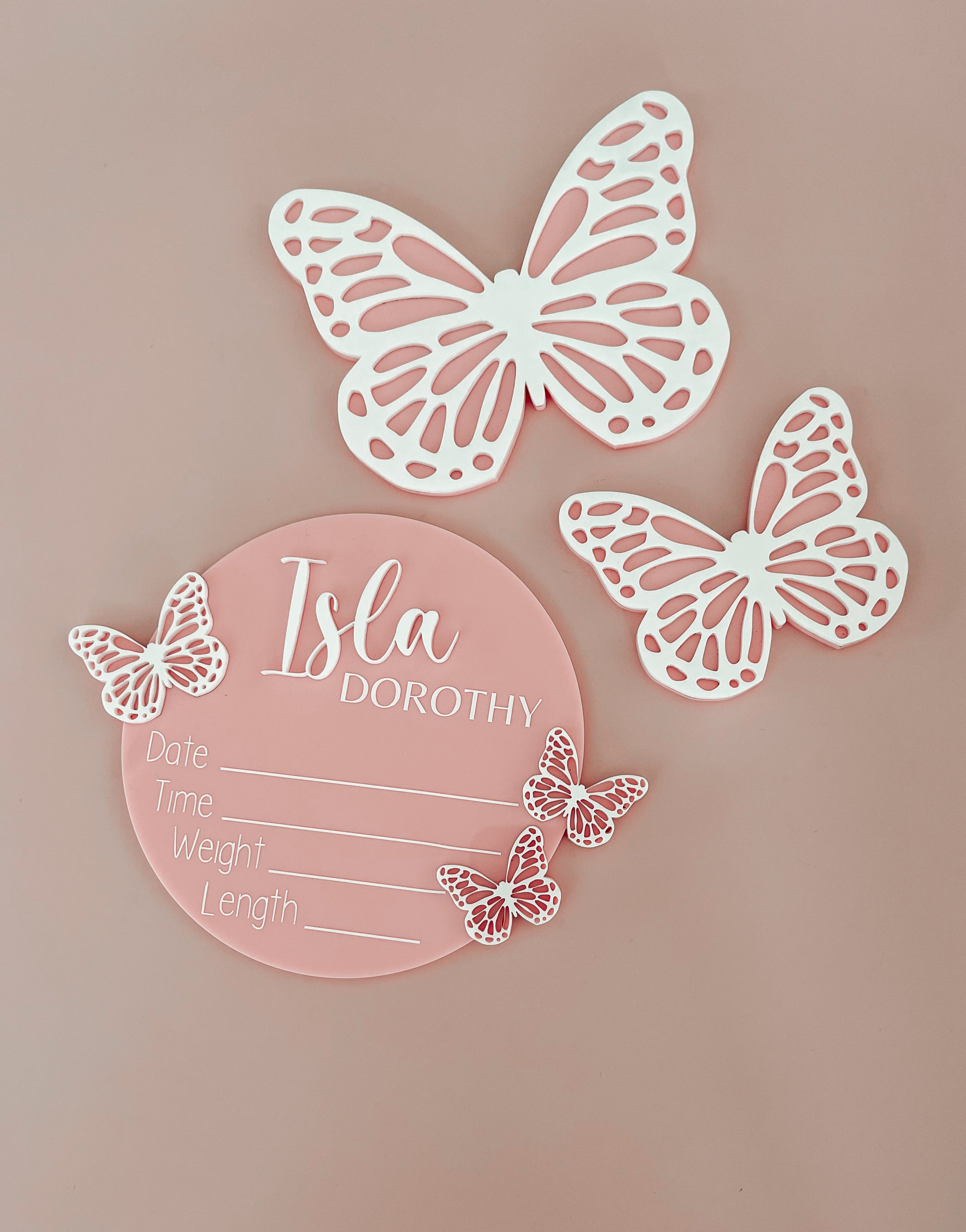 Beautiful 3D butterfly birth announcement, with spaces to fill in your little ones important birth information.