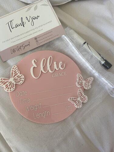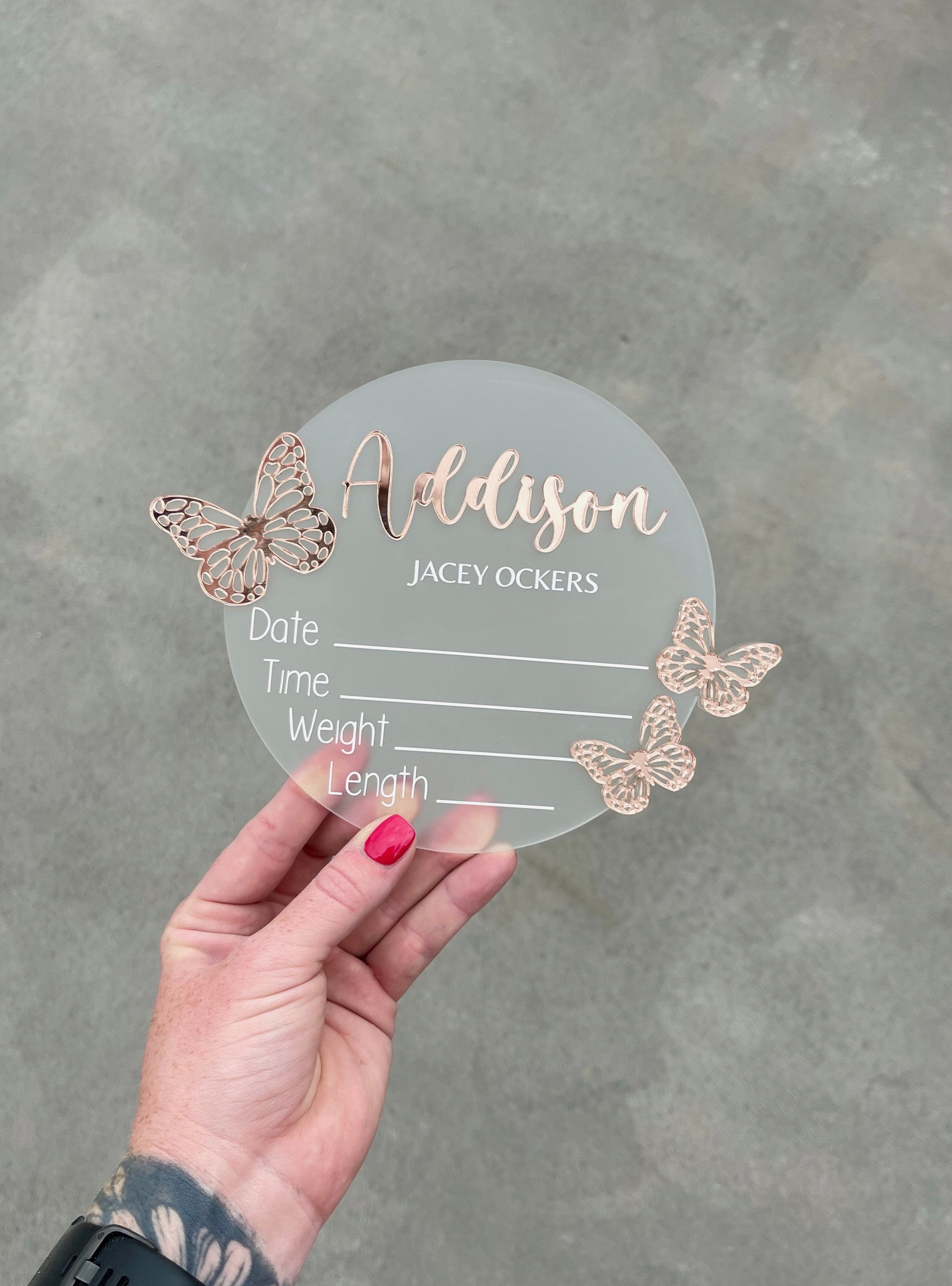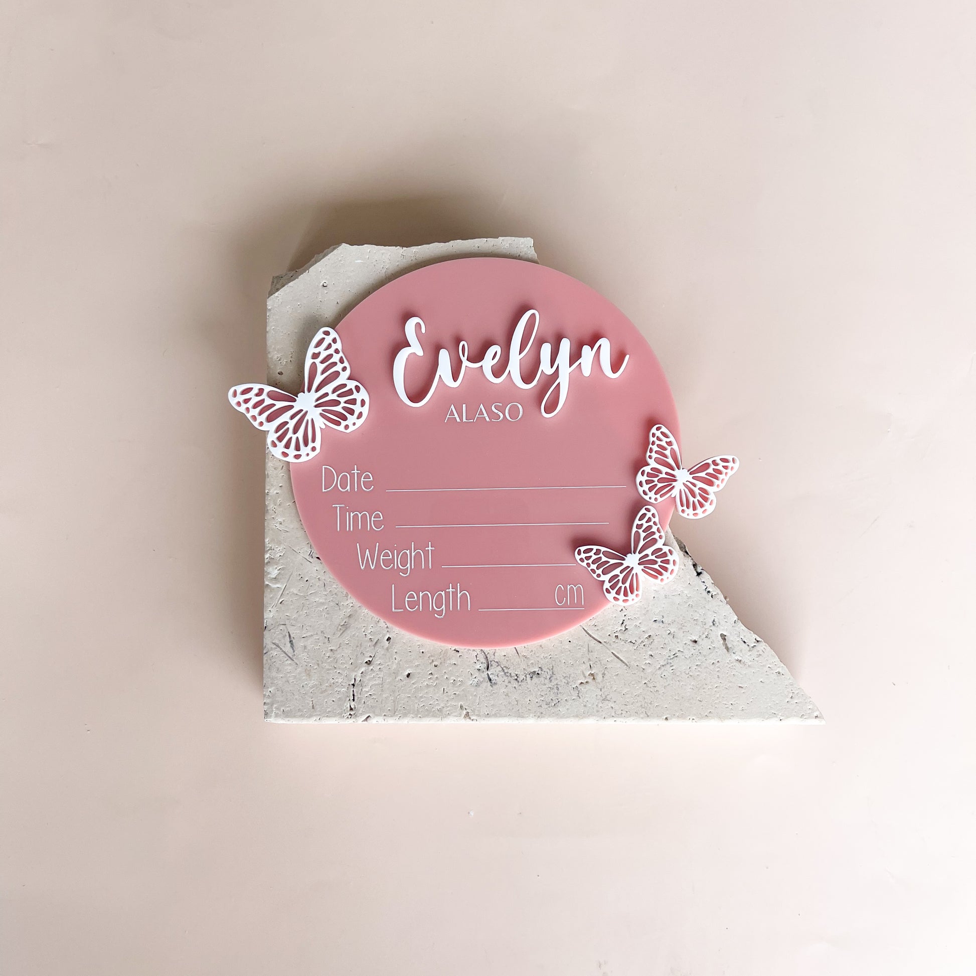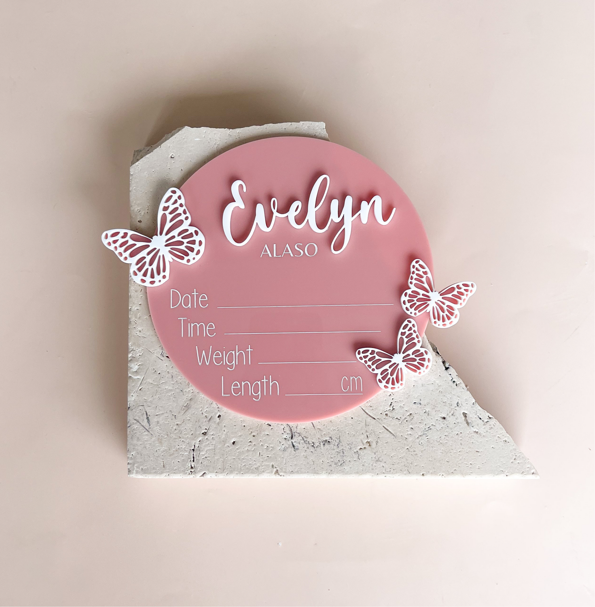 Beautiful 3D butterfly birth announcement, with spaces to fill in your little ones important birth information.