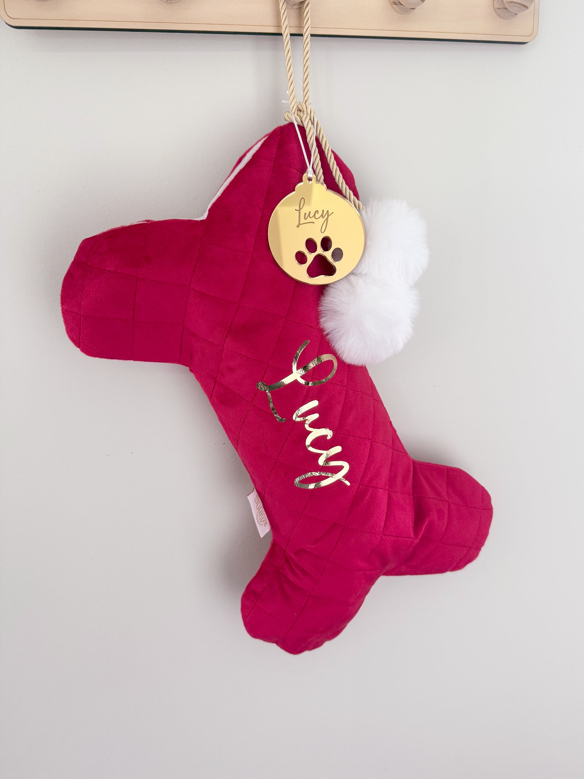 This plush velvet Christmas stocking is pawfect for dog and cat lovers! The elegant design features our super popular plush velvet material and fluffy pom poms, ready to be filled with treats and toys for your 4 leg friends!