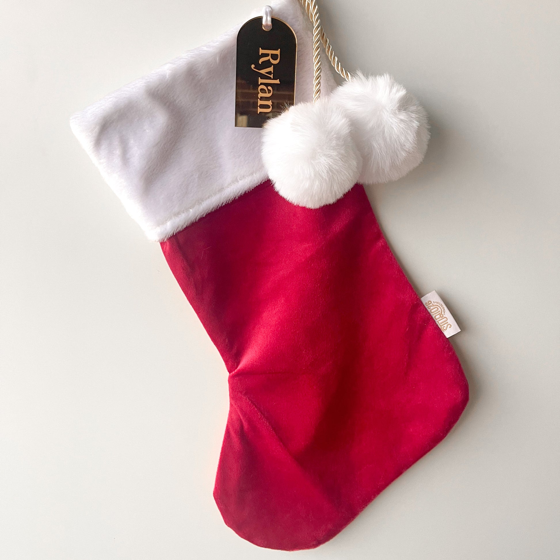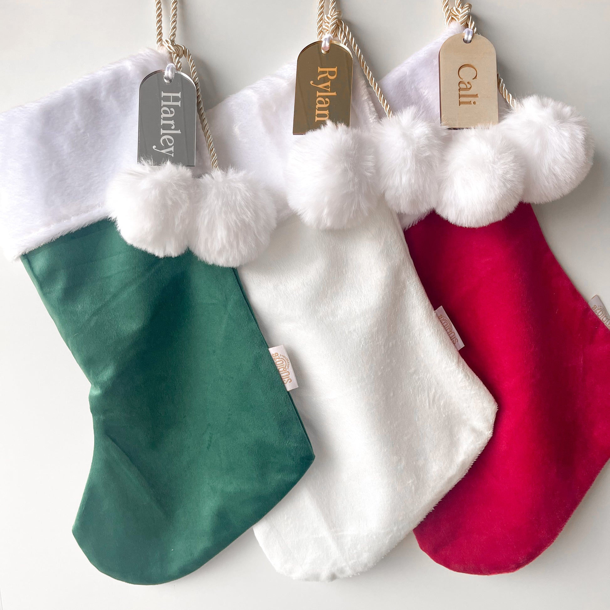 Each stocking comes with an engraved acrylic OR plywood name tag in your choice of cursive or block fonts