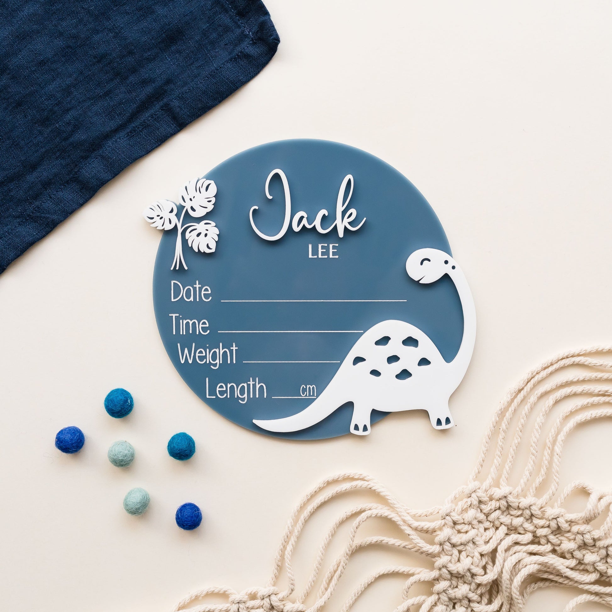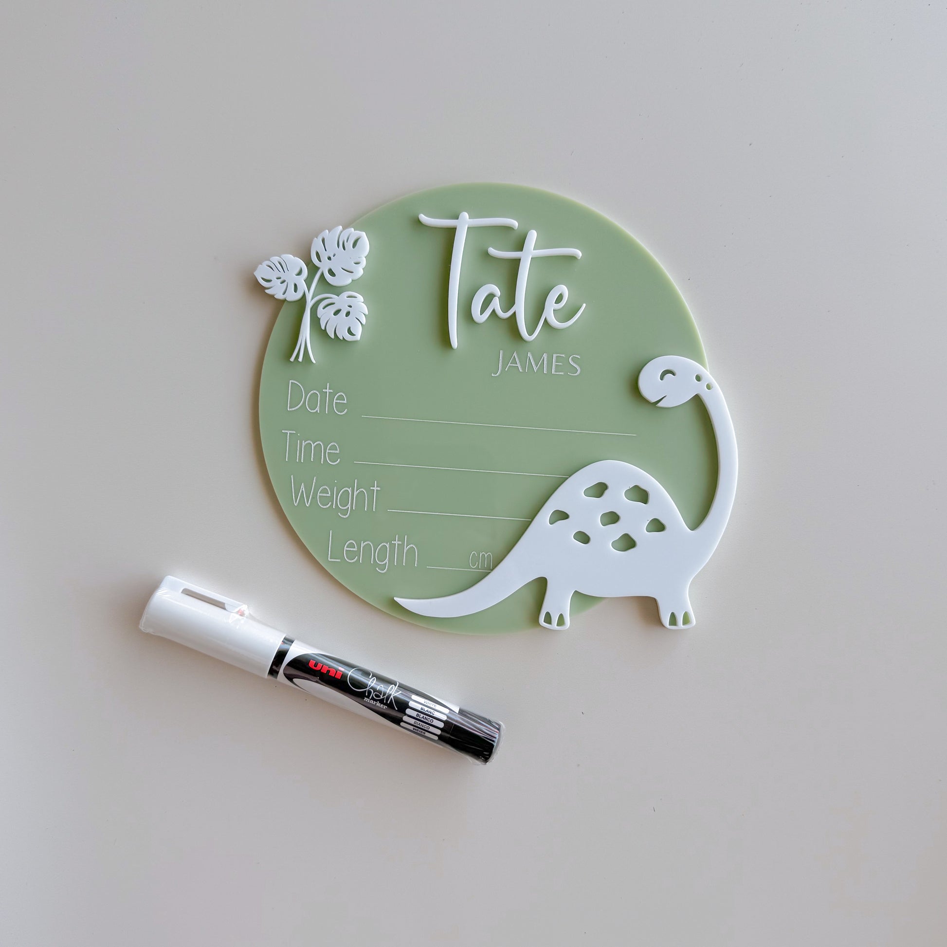 This birth announcement pairs perfectly with our Dinosaur Milestone Disc Set to make the perfect set.