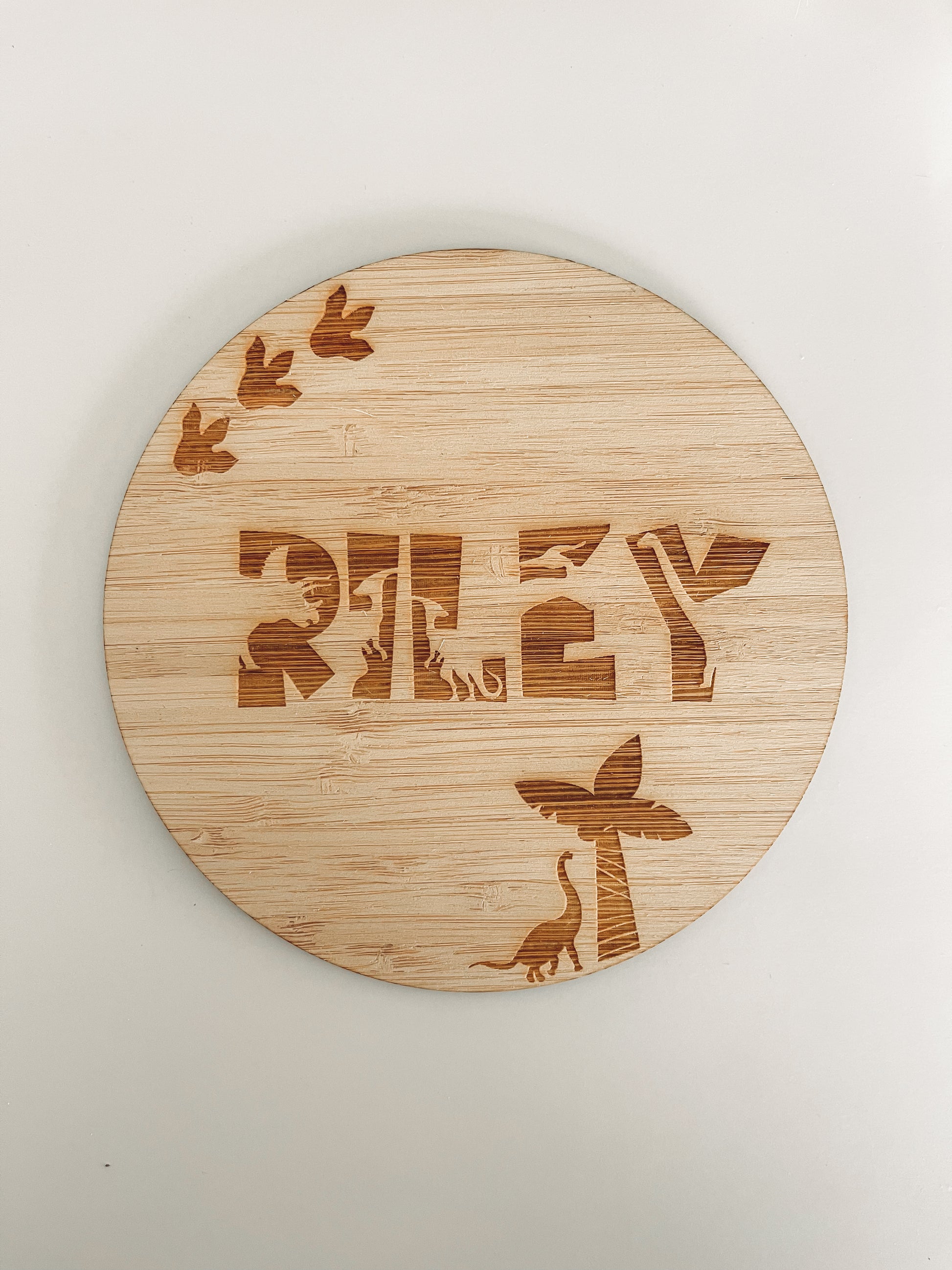 Disc is 3mm thick plywood. Due to plywood being a natural product, there may be some differences in colour/finish.
