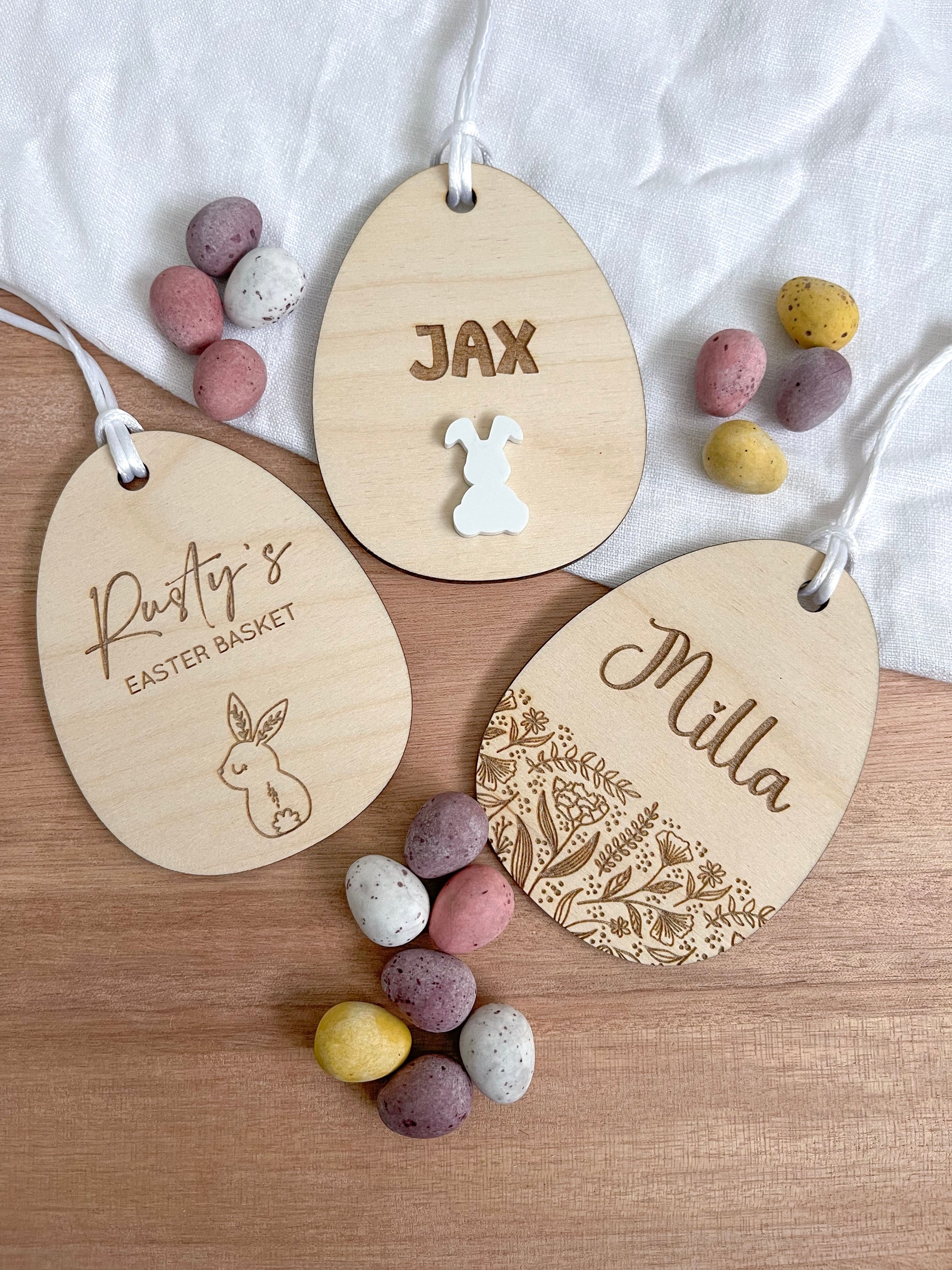 Protect those Easter eggs by adding a personalised name tag to each Easter basket! Available in a variety of designs.