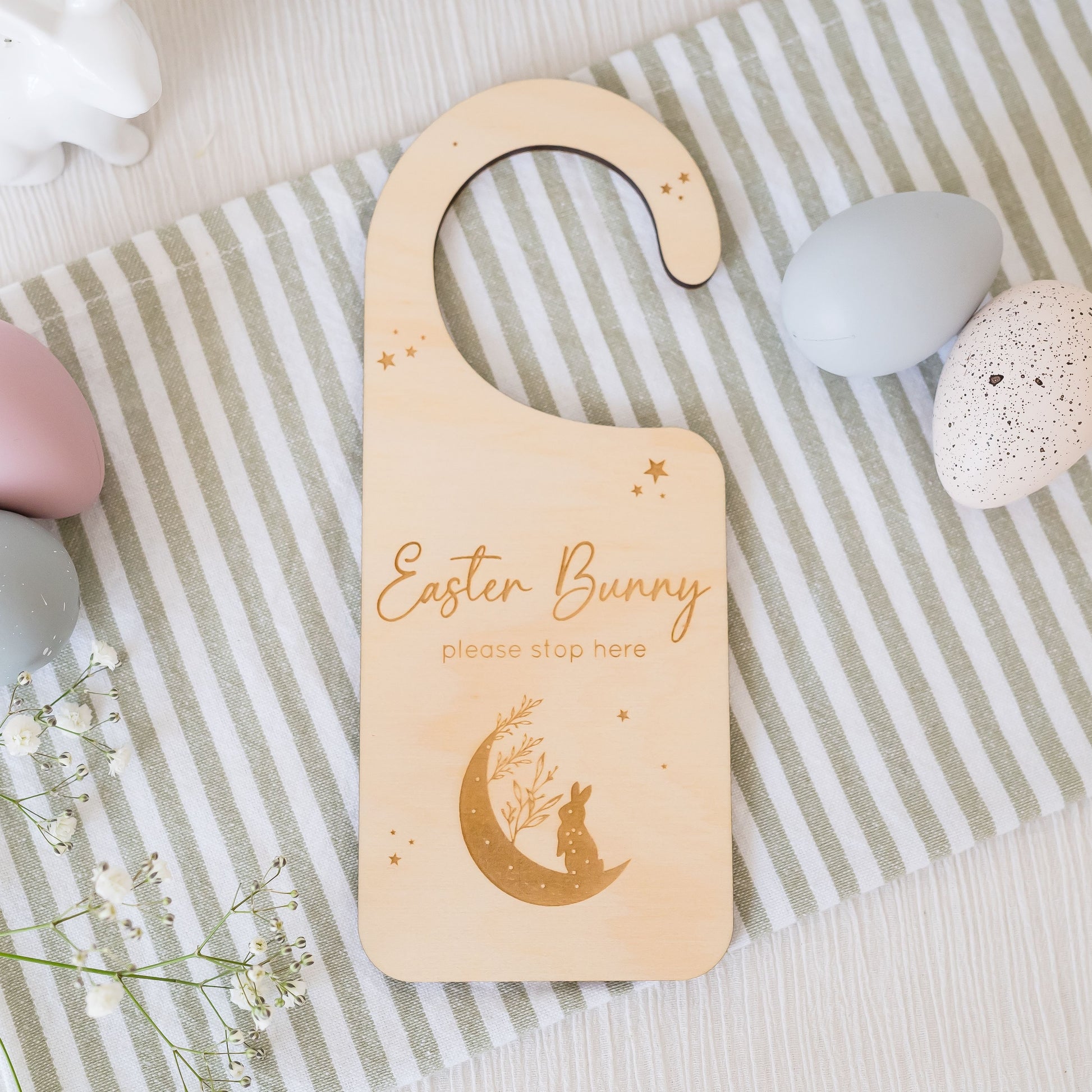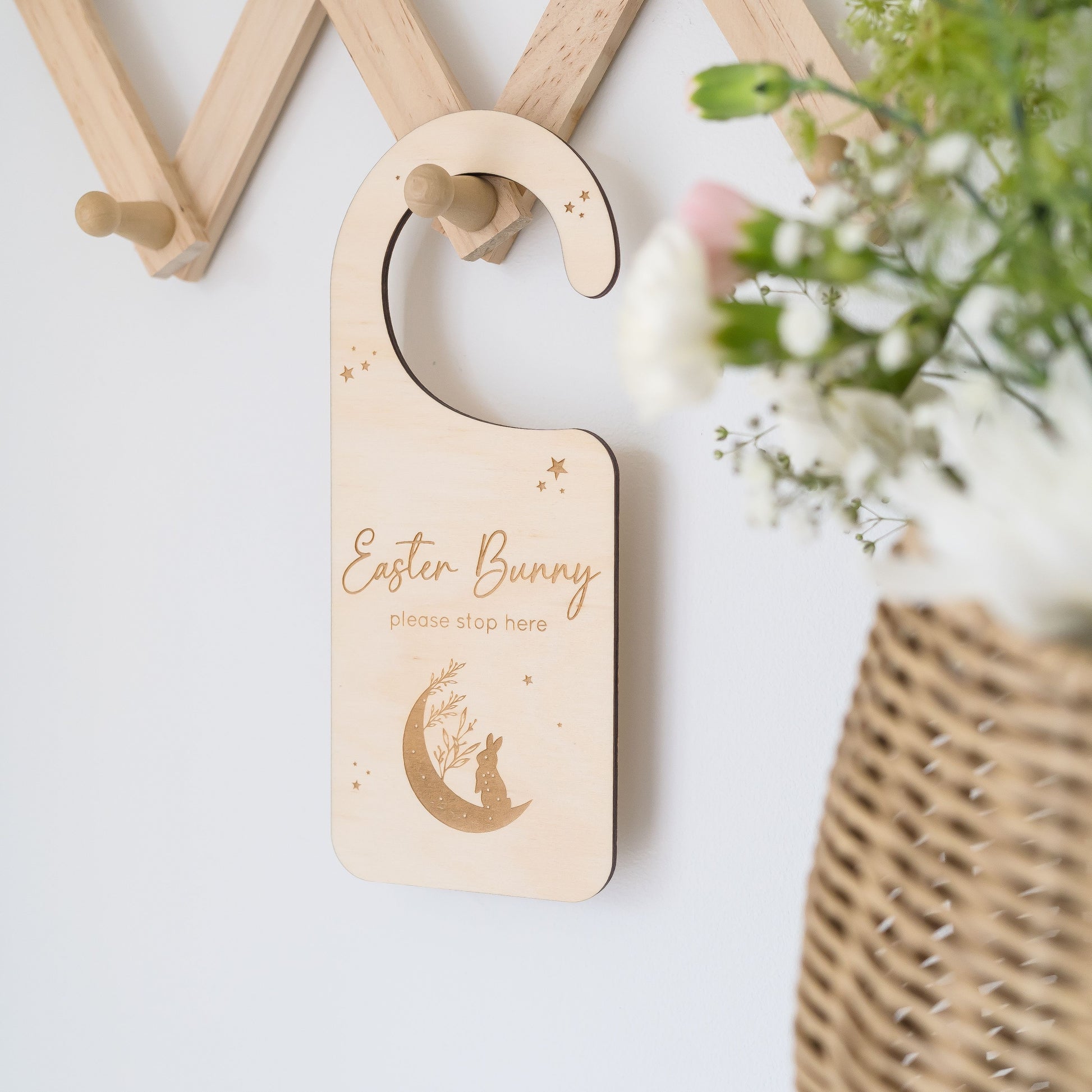 Make sure the Easter bunny knows where to stop by hanging our beautiful engraved door hanger on your door. Made to last this hanger will make sure the Easter Bunny hops by year after year.