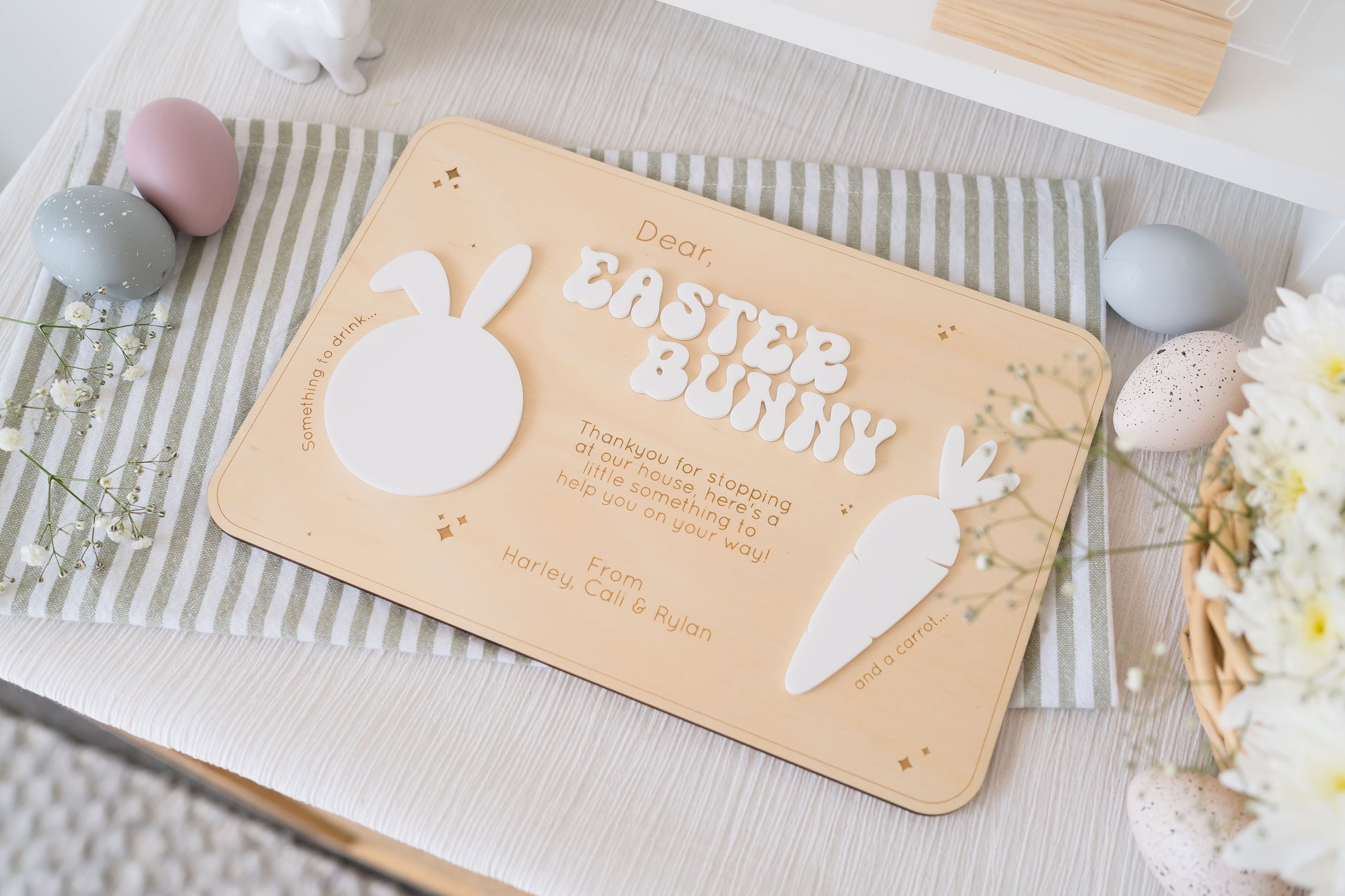 Keep the Easter bunny on your side this Easter with our Easter Bunny Treat board. Your kids will love leaving out a drink and carrot for the Easter Bunny.