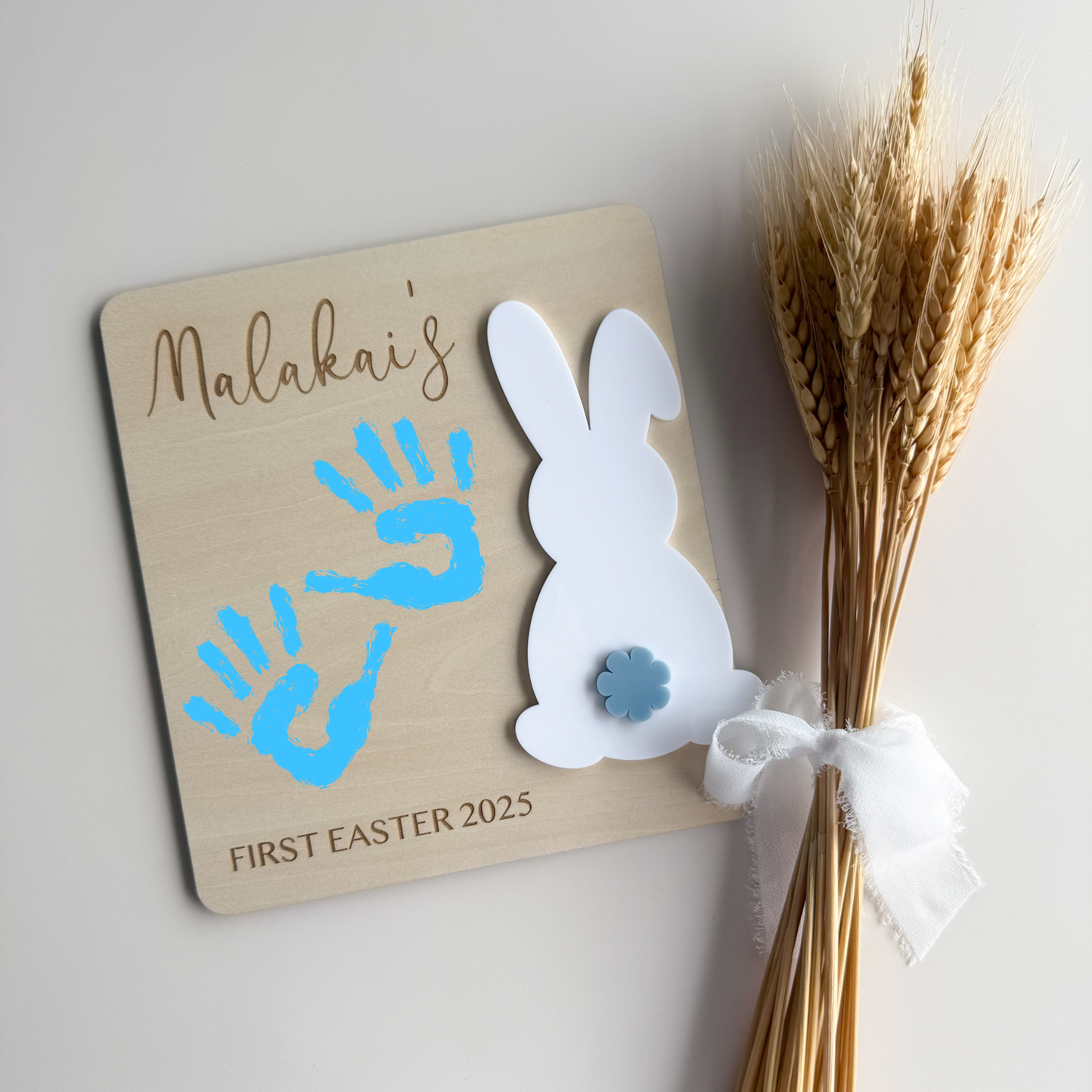 Celebrate your little one's first Easter with our My First Easter Handprint Plaque! Capture their tiny handprint and or footprint on this adorable plaque. A perfect keepsake and a fun way to commemorate such a special occasion!