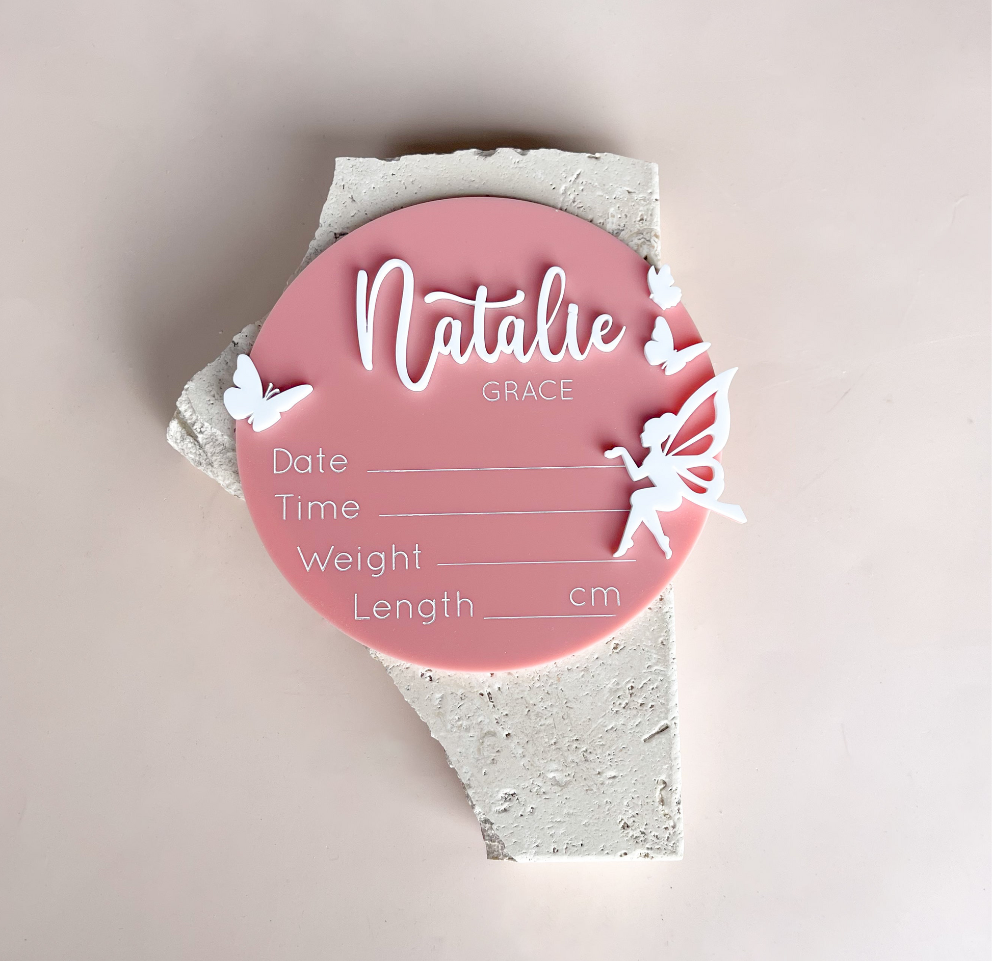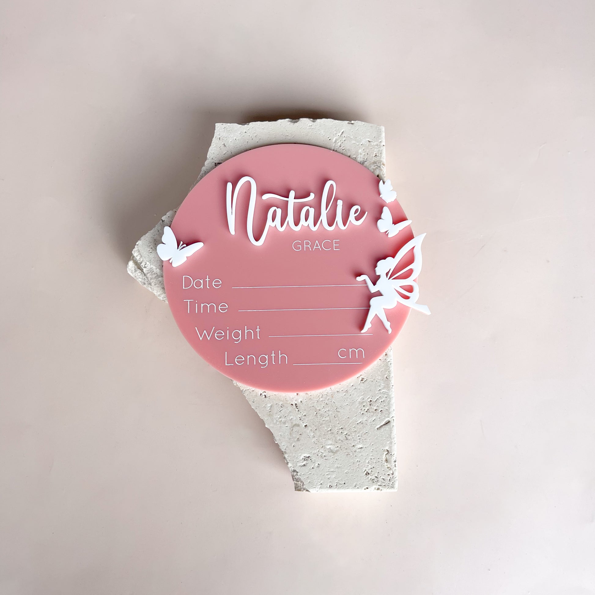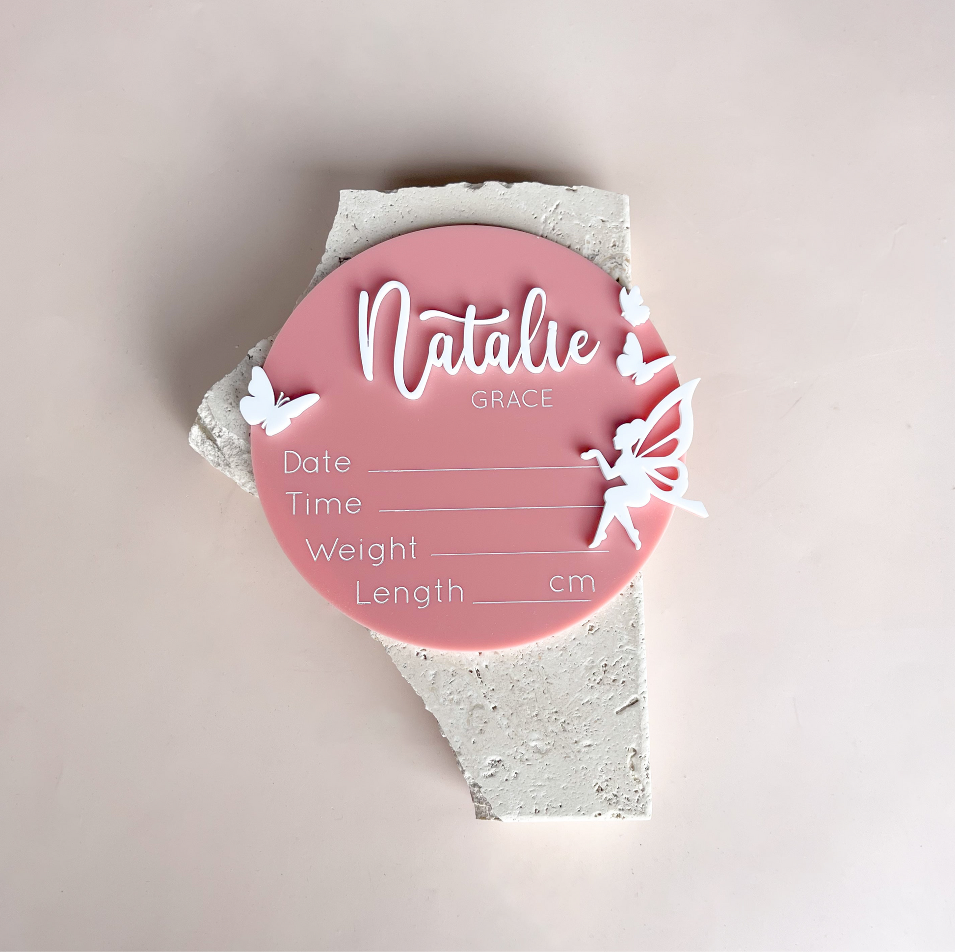 Introduce your little one with our Fairy Butterfly Birth Announcement! This stunning and unique design features a whimsical fairy with mini butterflies, adding a magical touch to your baby's arrival. Share the news in a beautiful and elegant way with this birth announcement plaque.