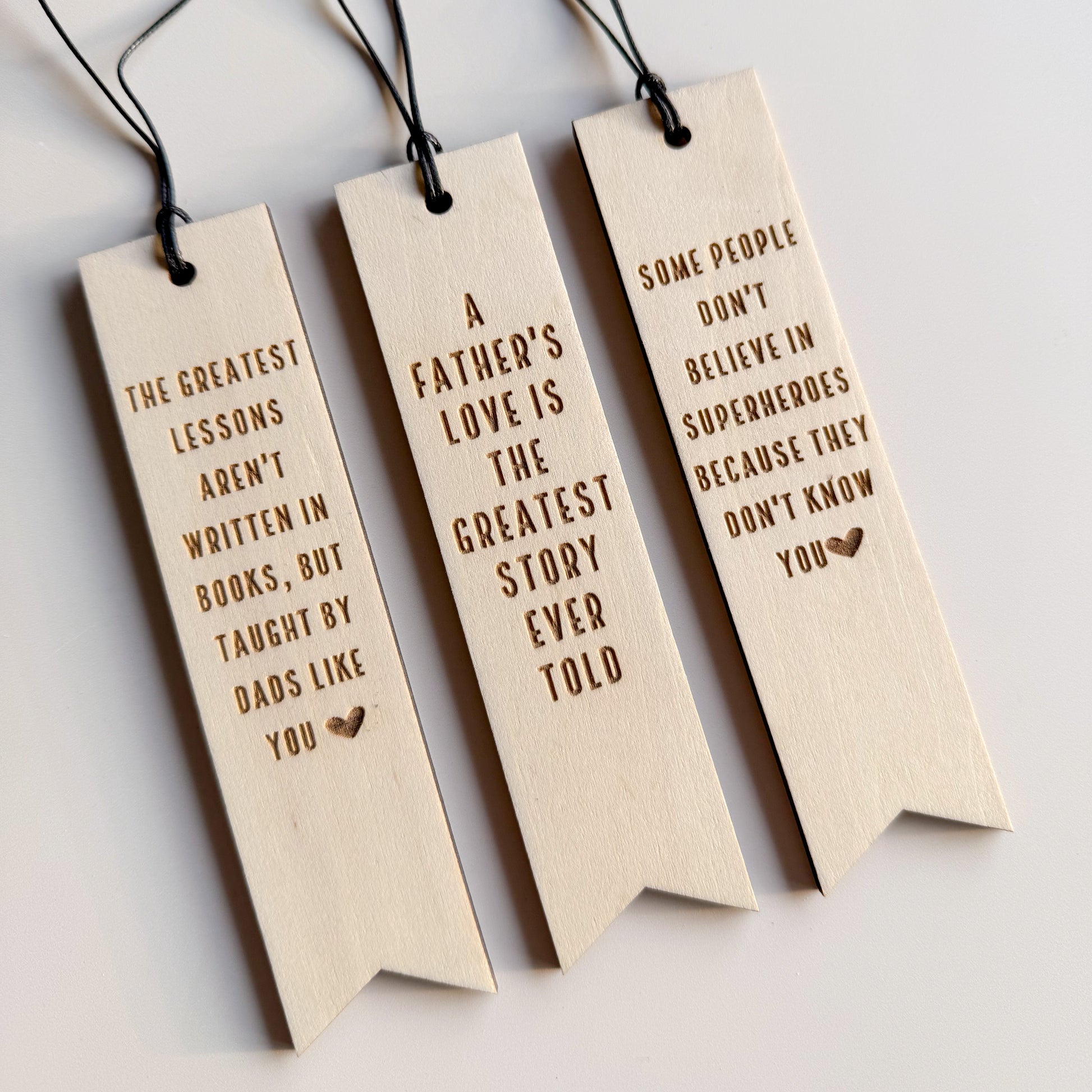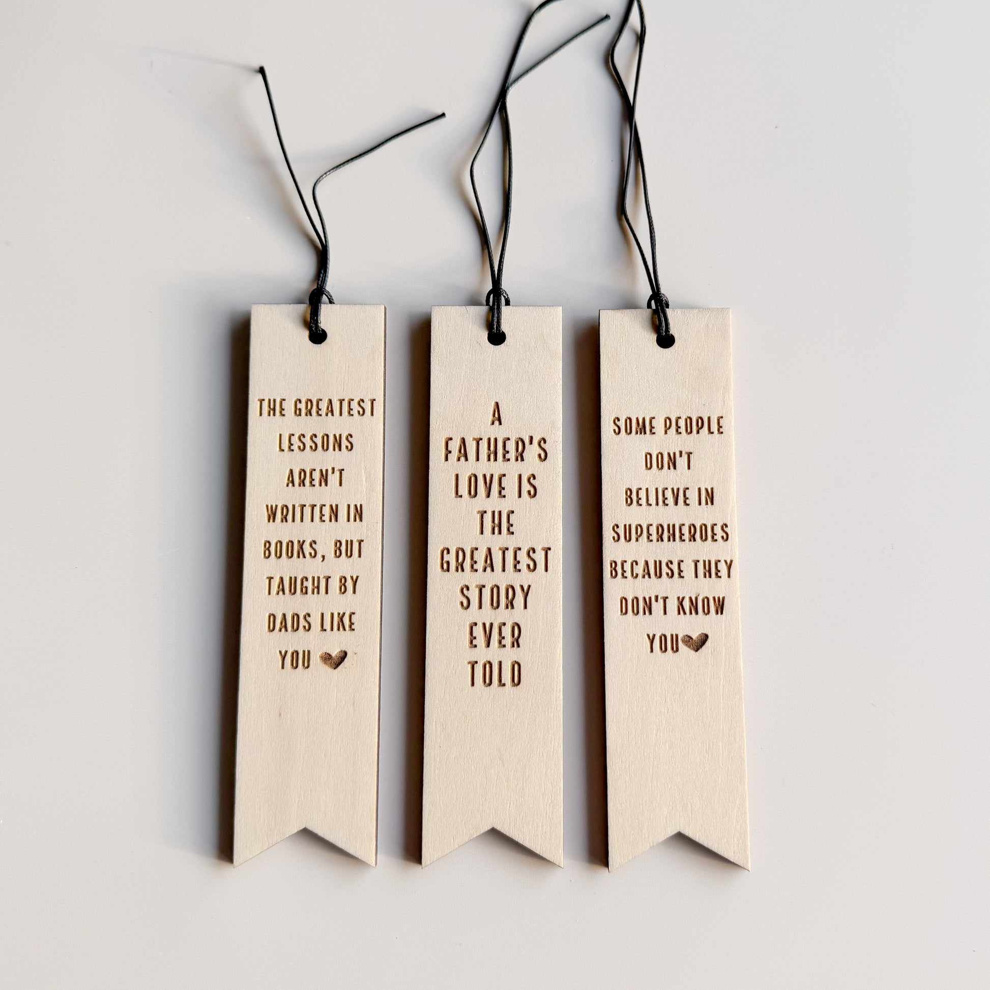 - Each bookmark is laser-engraved with a sentimental quote that honours the love, strength, and guidance of a father