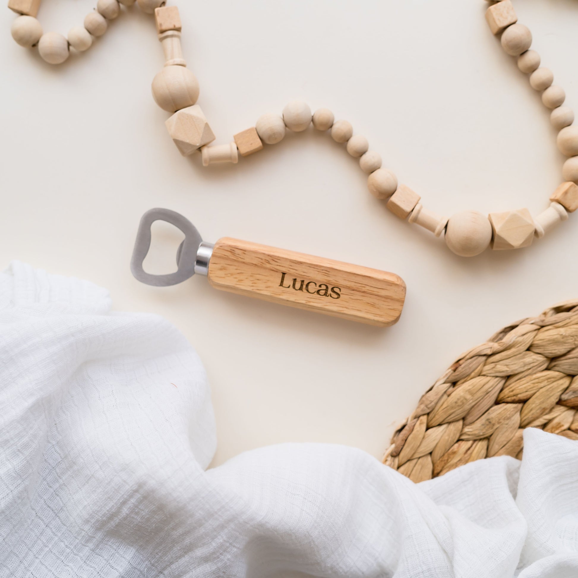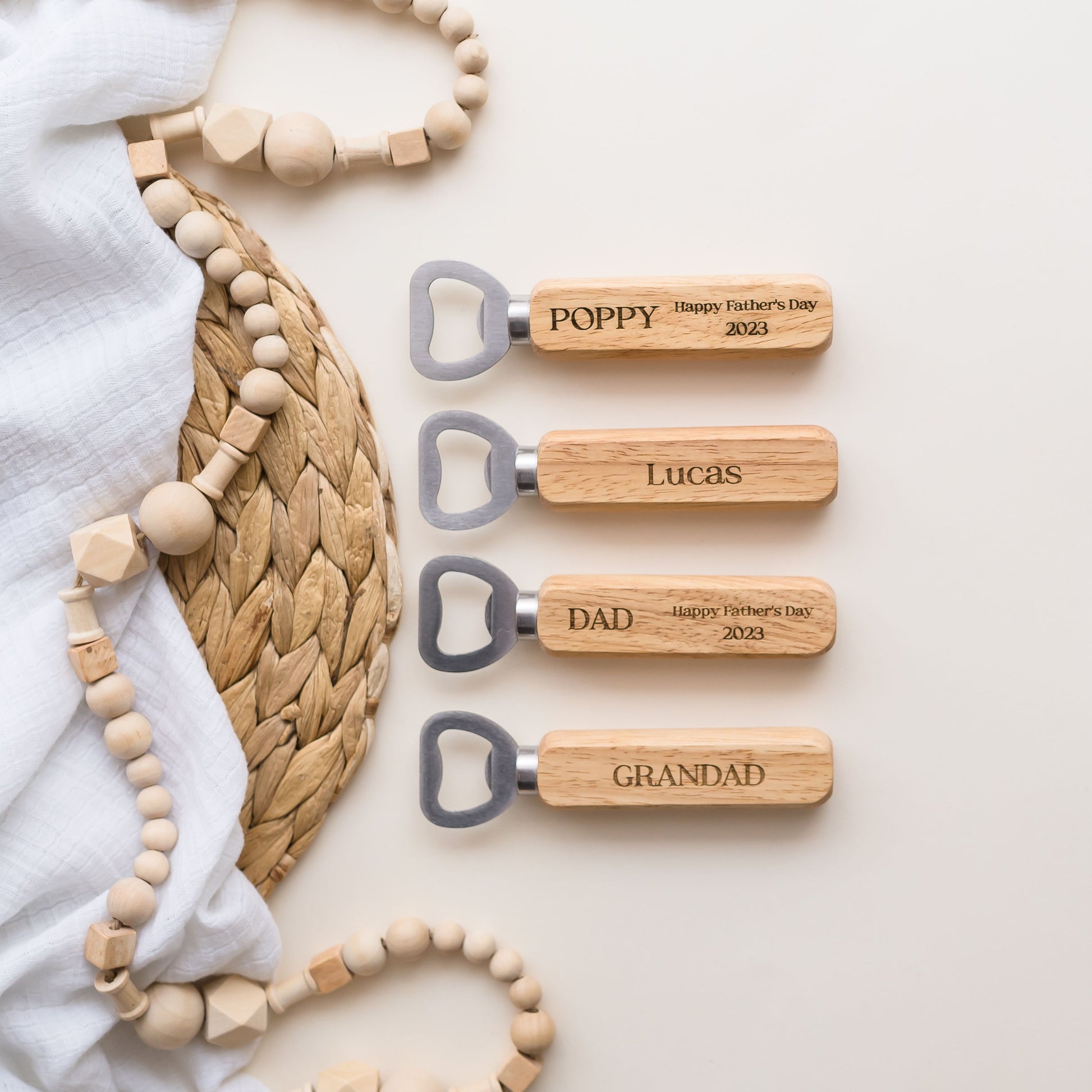 Each bottle opener is made from natural materials and so there may be slight variances in wood colour, grain and engraving colour