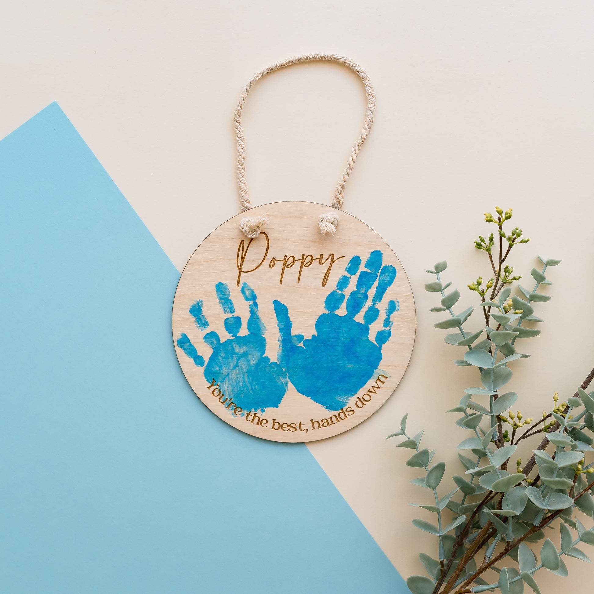 This hanging plaque is ready to add handprints and gift to that special someone for Father's Day.