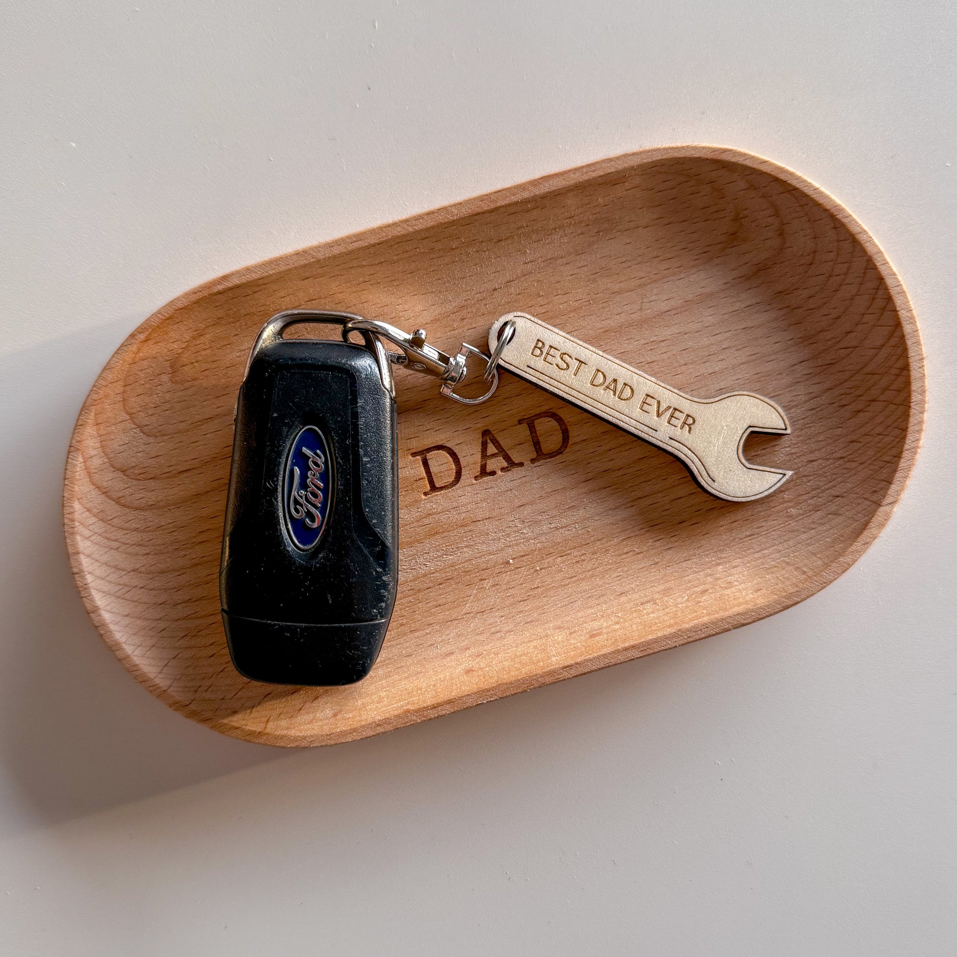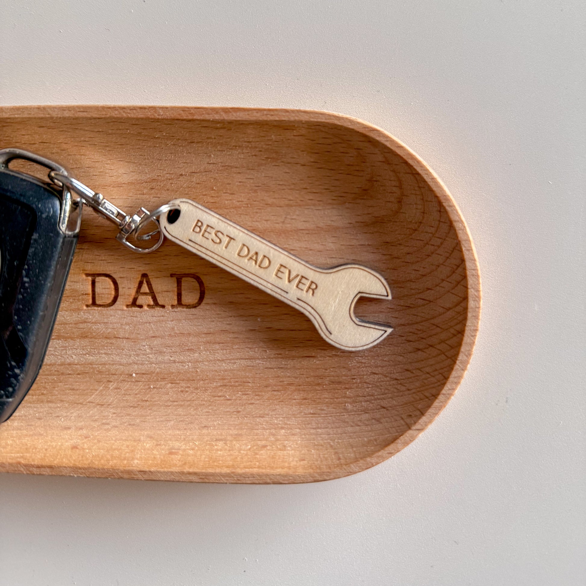 For the dad who’s always fixing things – from broken toys to big life problems – this spanner keyring is a small but mighty token of appreciation. Made from durable plywood and shaped like a classic wrench, it’s engraved with the words “Best Dad Ever” to remind him how loved he is every time he grabs his keys.
