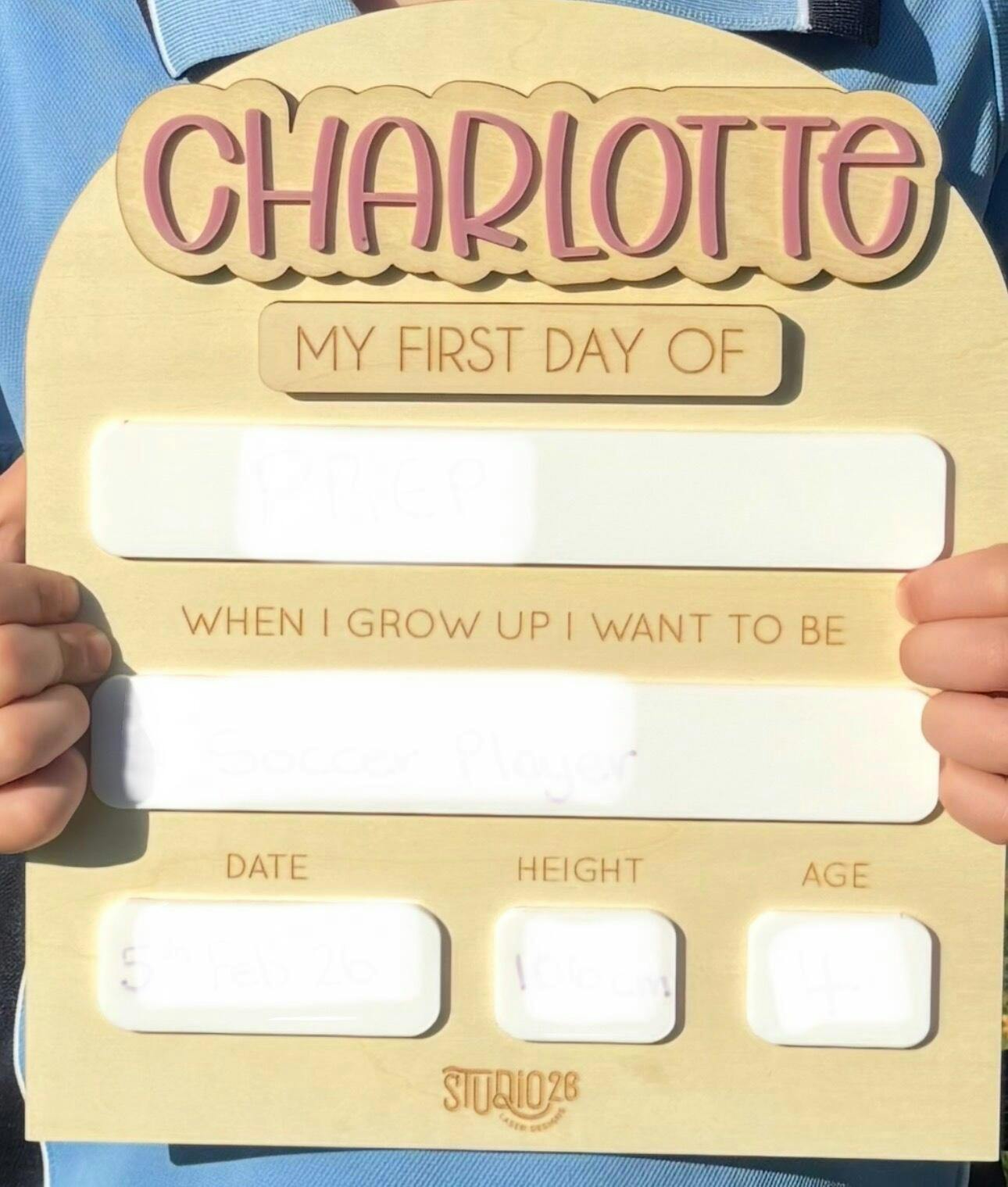 Compare your little ones growth between their first and last day of school each year with our range of fun and functional first/last day boards!