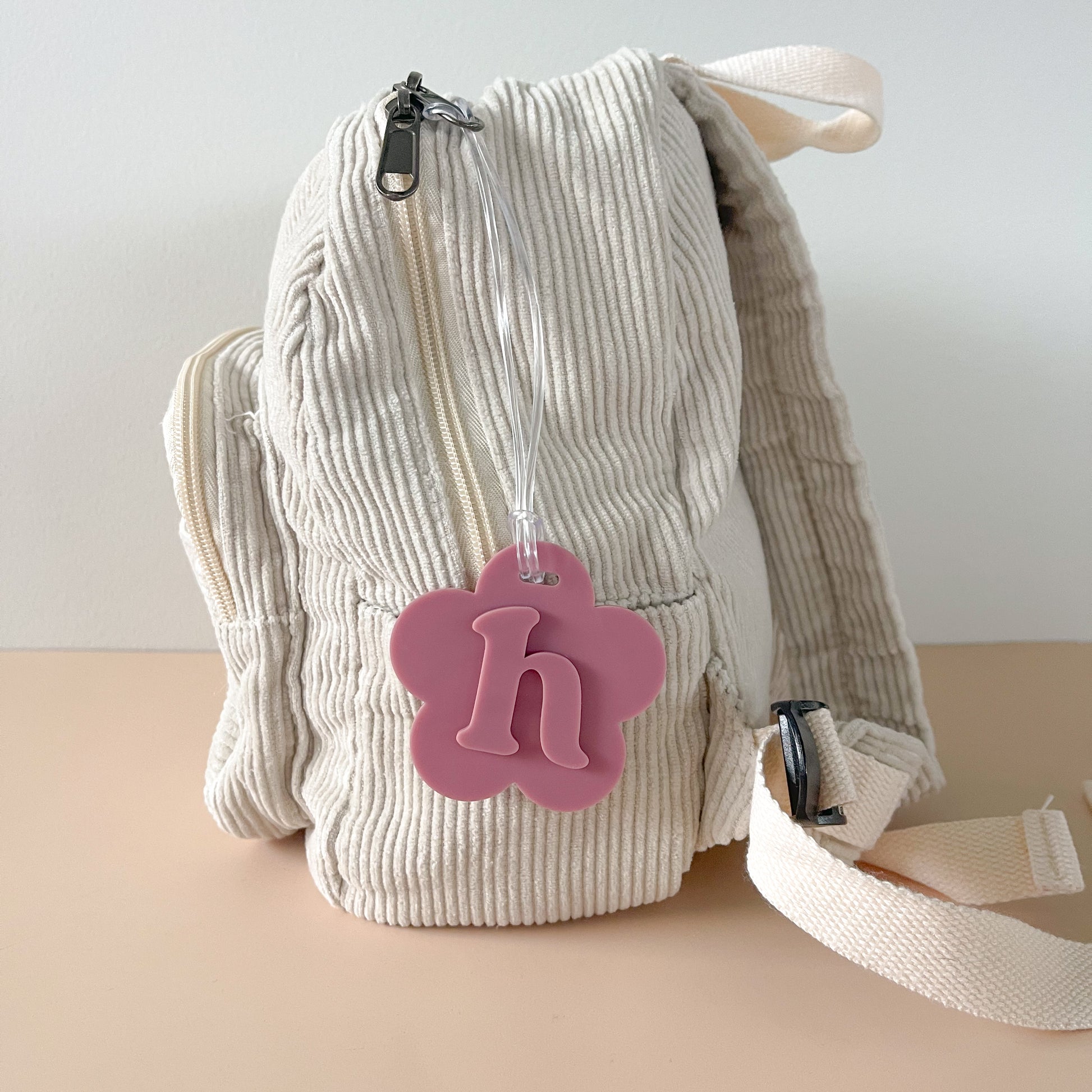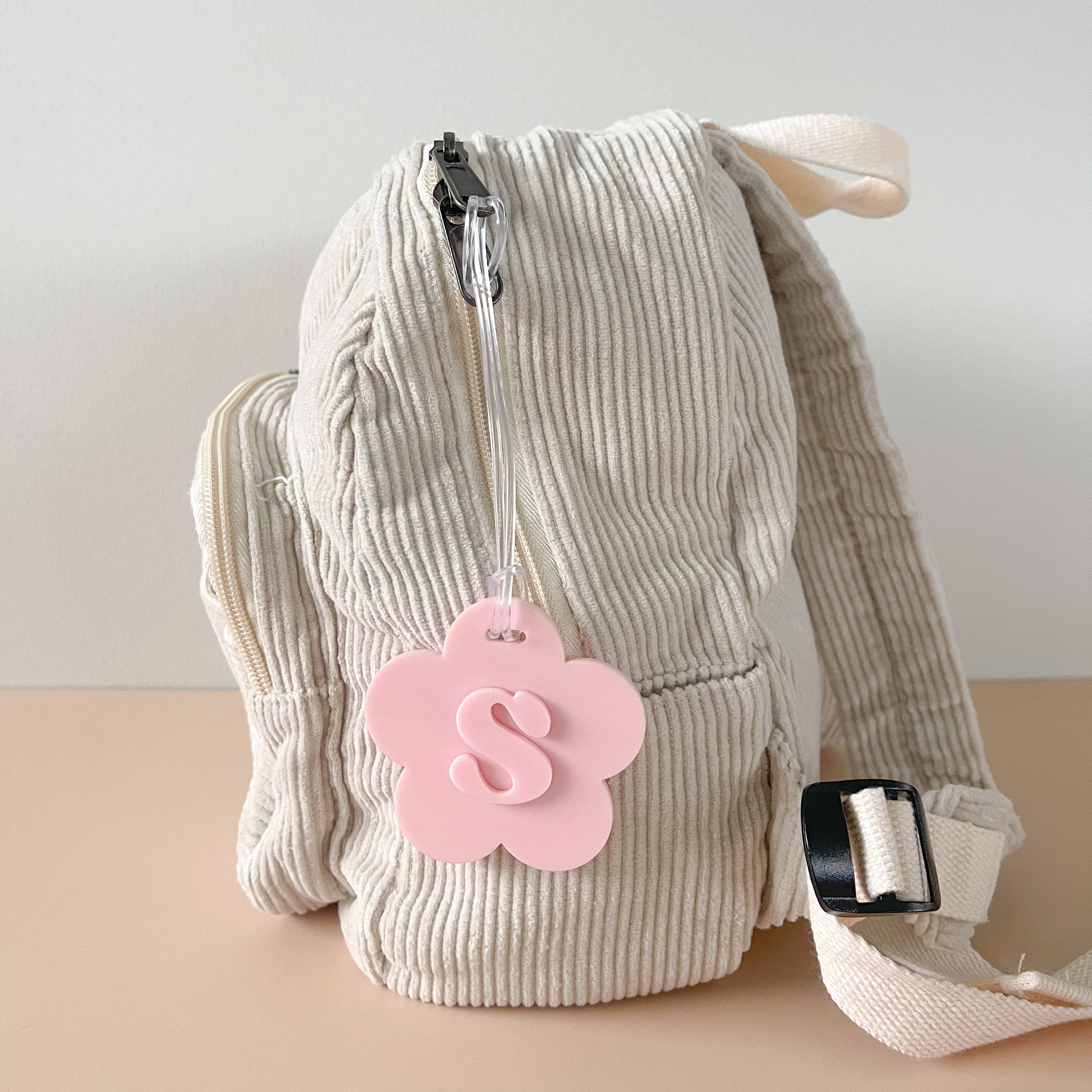 Make your bags stand out with this beautiful floral-shaped bag tag, monochrome initial tag with optional engraved name for an extra personalised touch!
