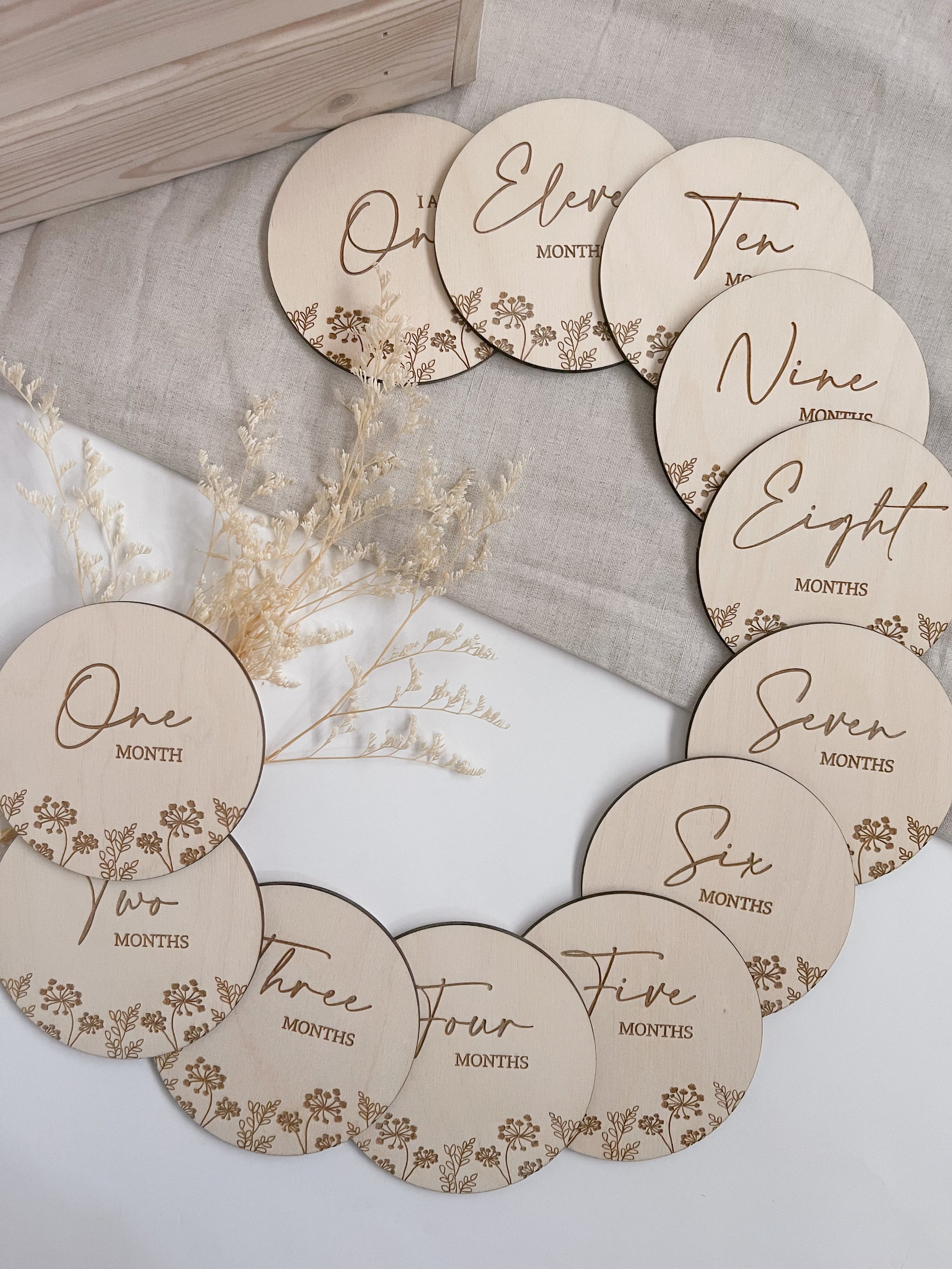 A uniquely beautiful milestone set to capture your little ones growth month by month.
