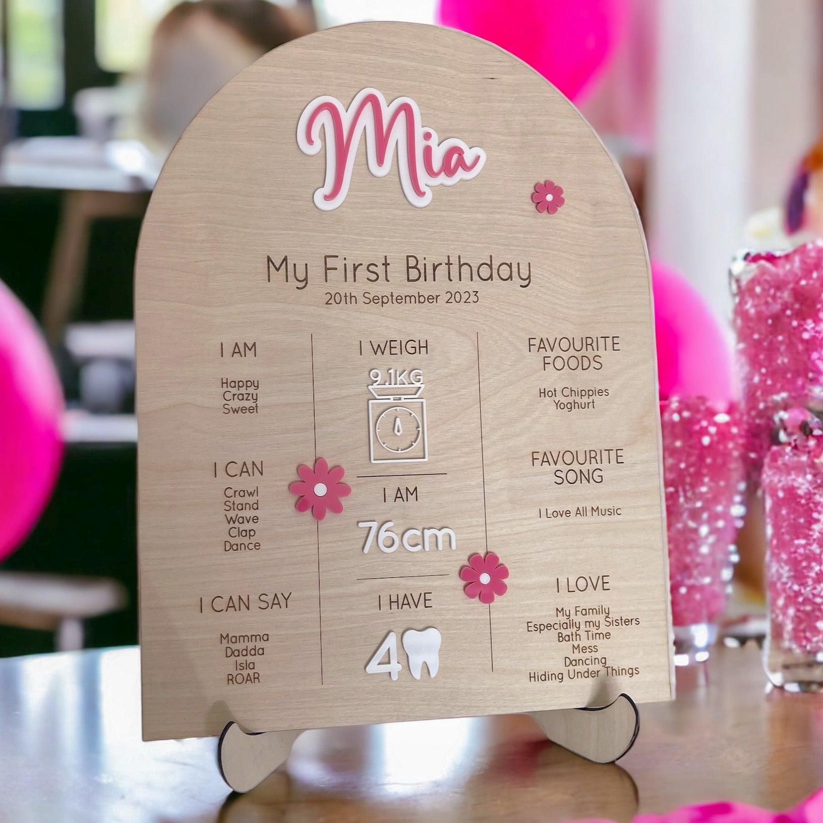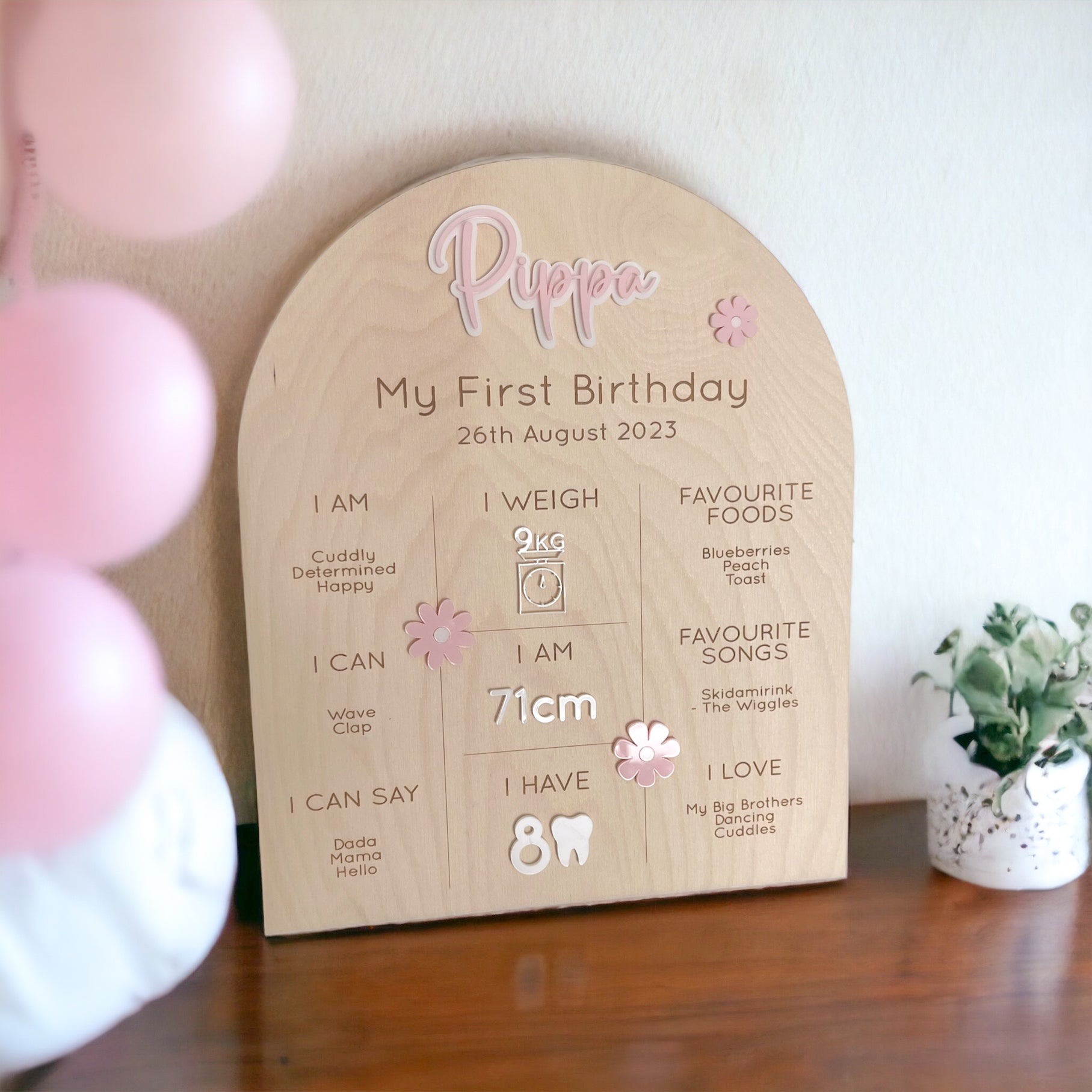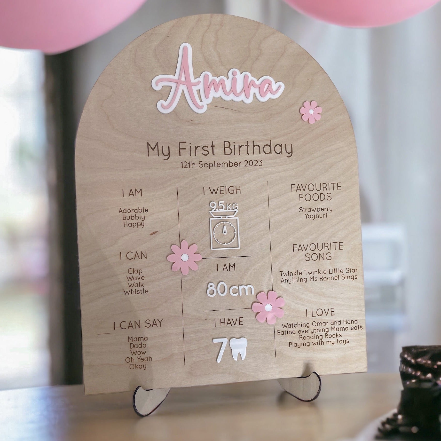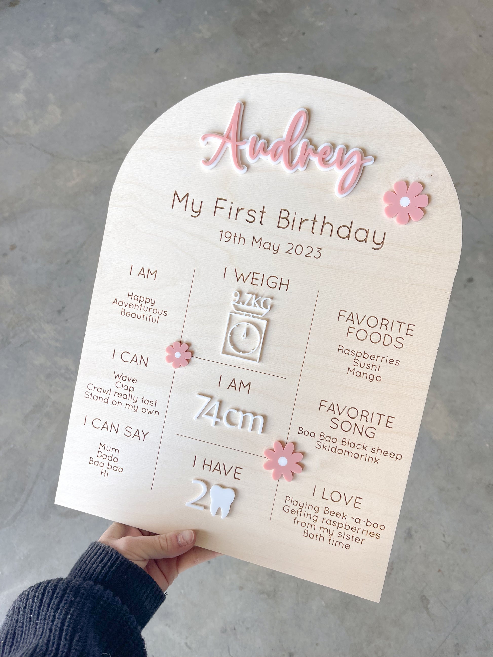 Personalised to your child with their weight, height and number of teeth along with a bunch of other favourite things and things they can do/say.