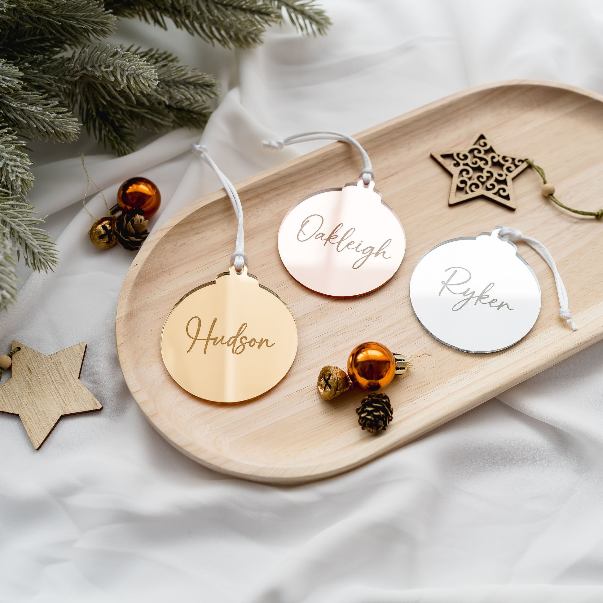 Perfect for adding each family member to the tree in a classy way, these engraved baubles will make keepsakes to treasure for years to come.