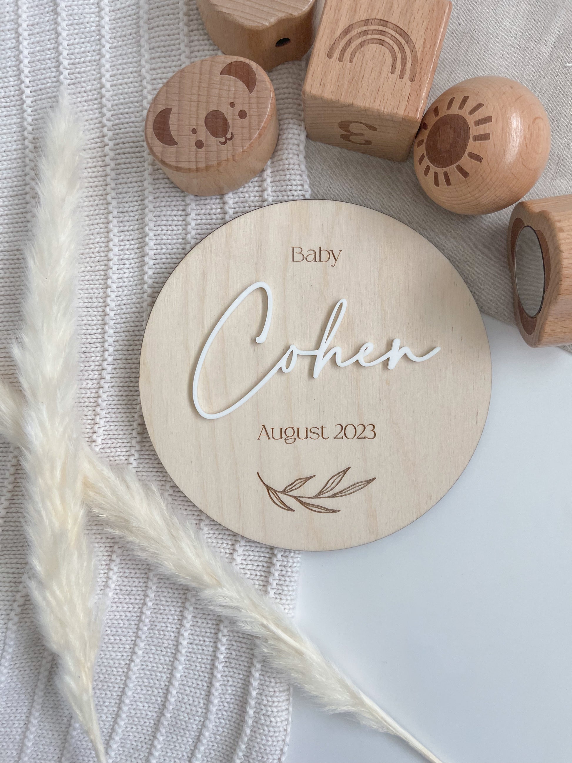 Announce your pregnancy with this simple and beautiful announcement plaque.