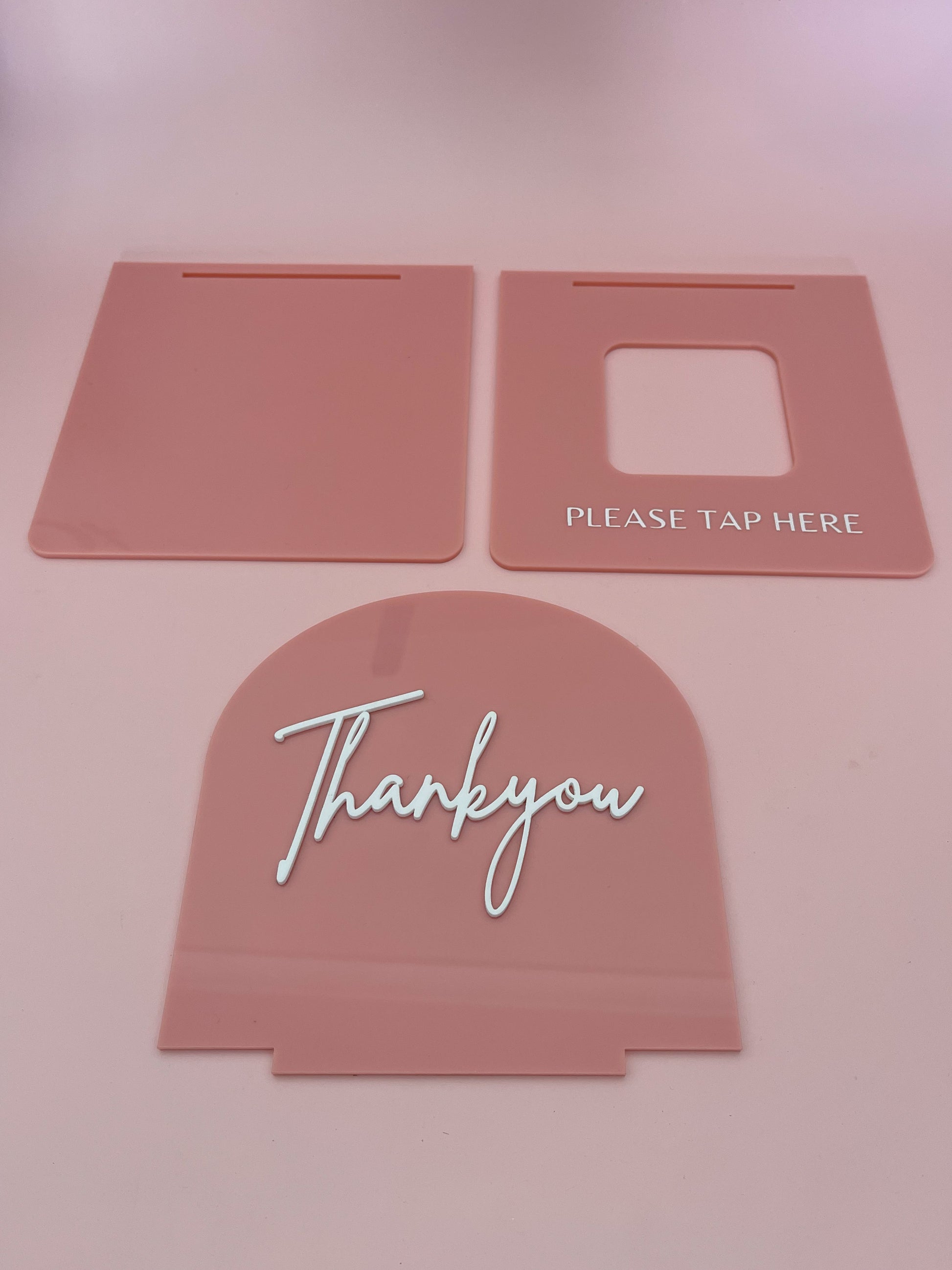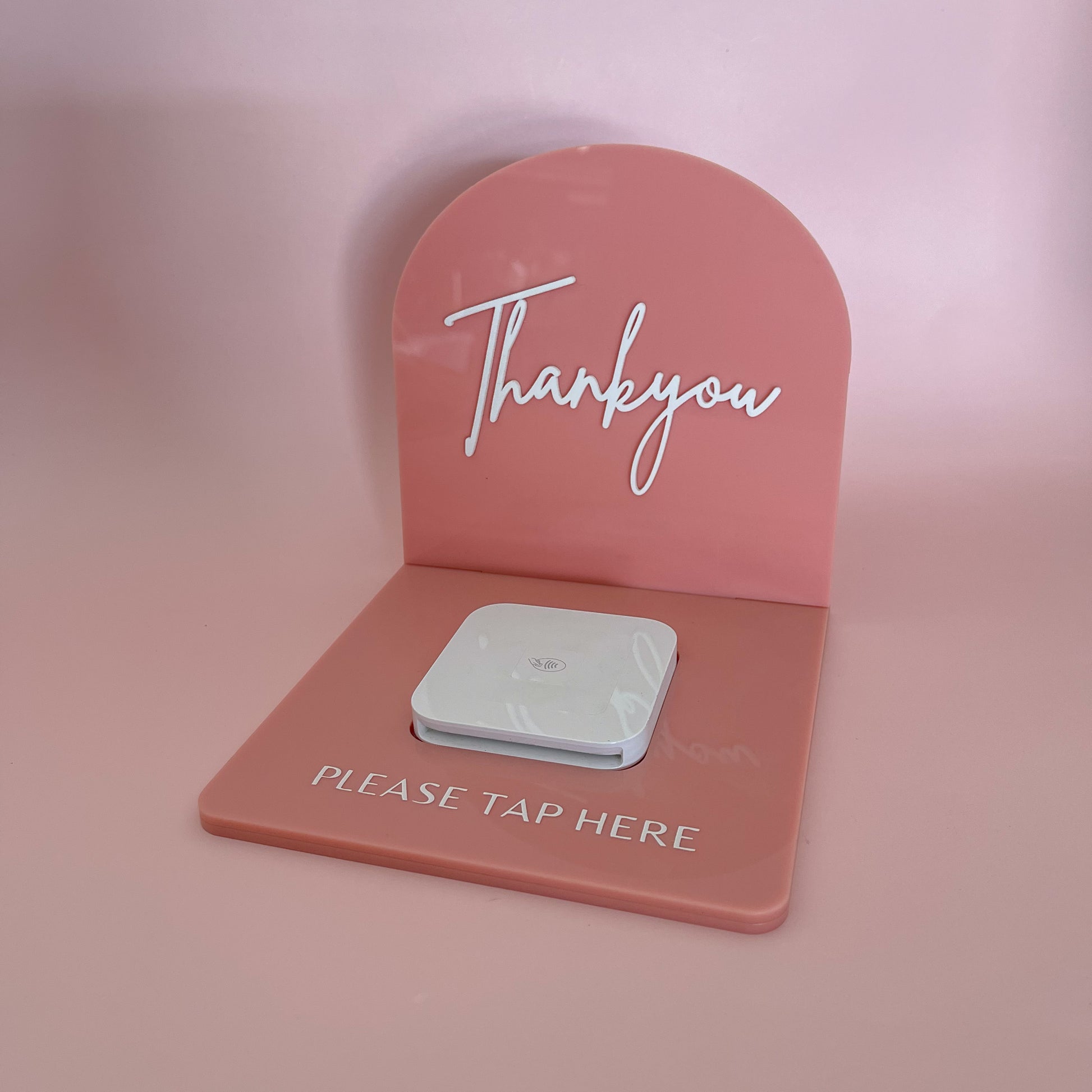 Made from 3mm thick acrylic the base is double layered so the square reader can slot in.