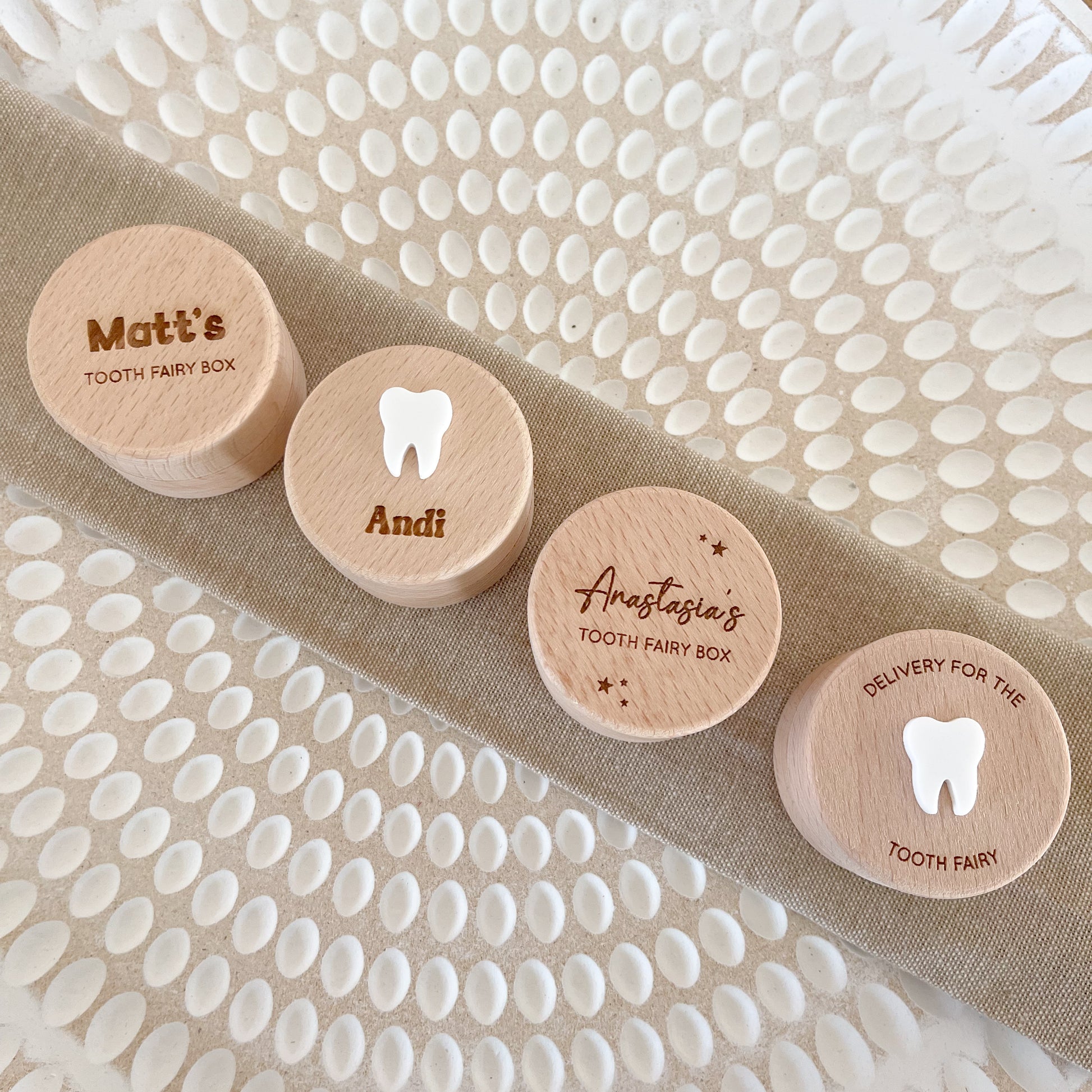 Our custom Tooth Fairy Box is the perfect place to keep those precious baby teeth safe and sound. A playful way to celebrate the magic of losing a tooth (and getting a visit from the Tooth Fairy) in style!