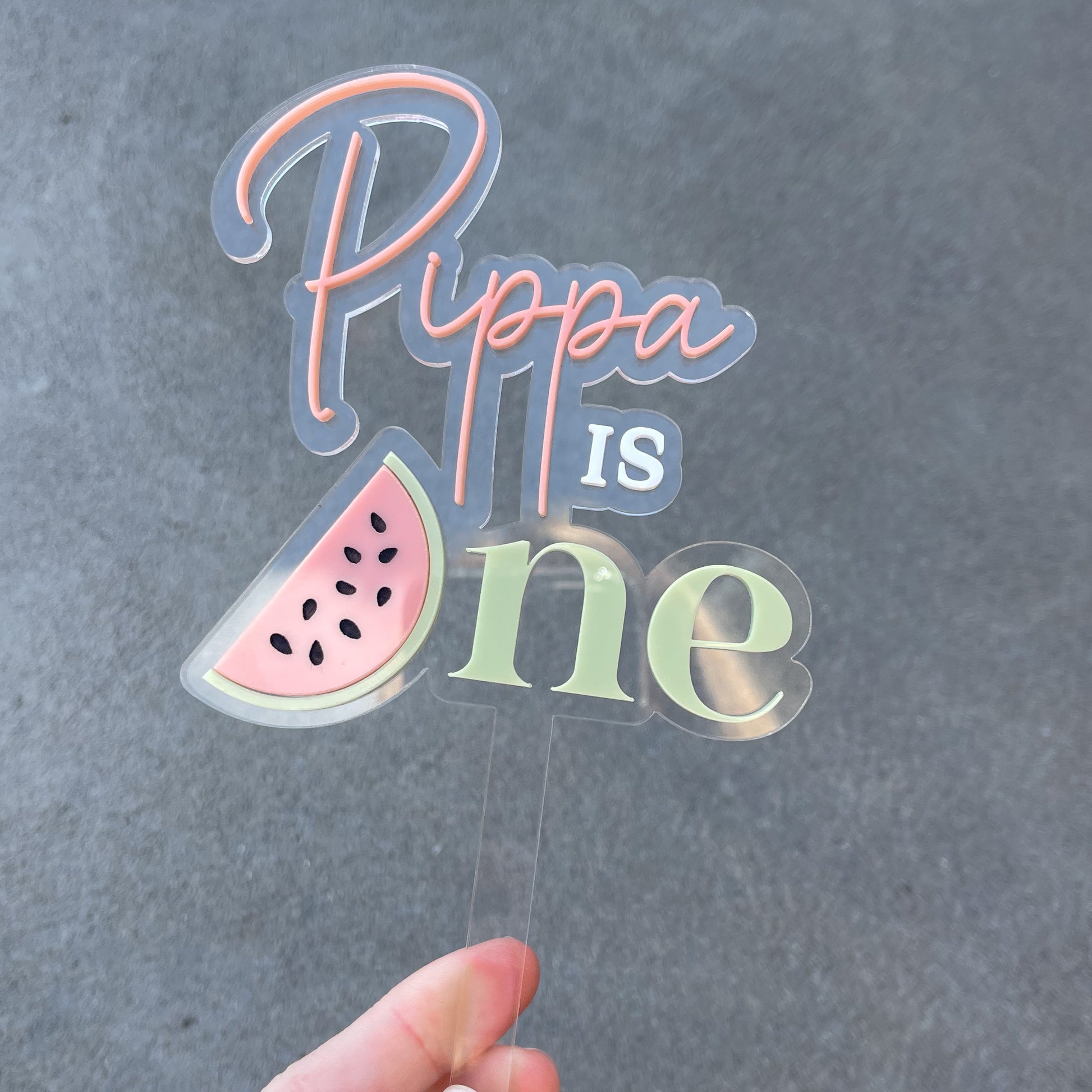 Top off your little one's birthday cake with this Watermel'ONE' cake topper! Featuring a watermelon theme, it adds a playful touch to any celebration. A fun and unique addition that is sure to make your child's special day even sweeter!